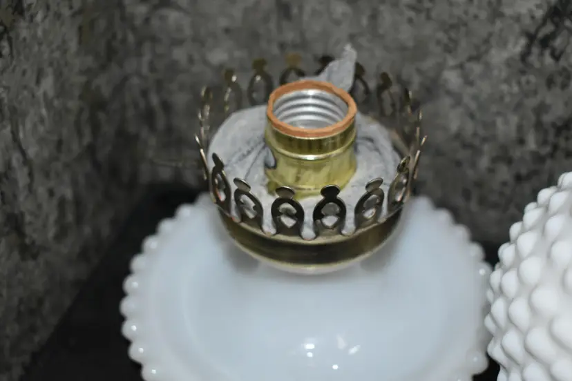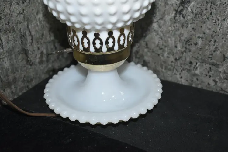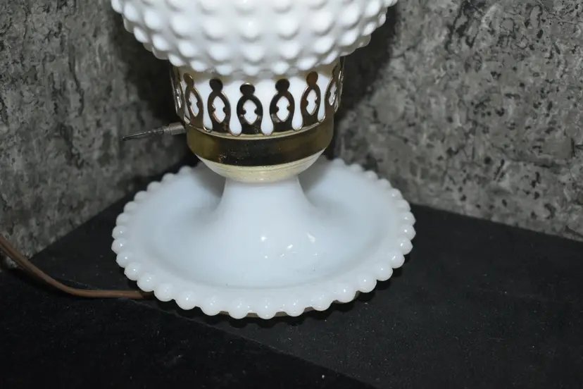 Milk glass hobnail hurricane lamp. Electric. Excellent condition. No chips or cracks.