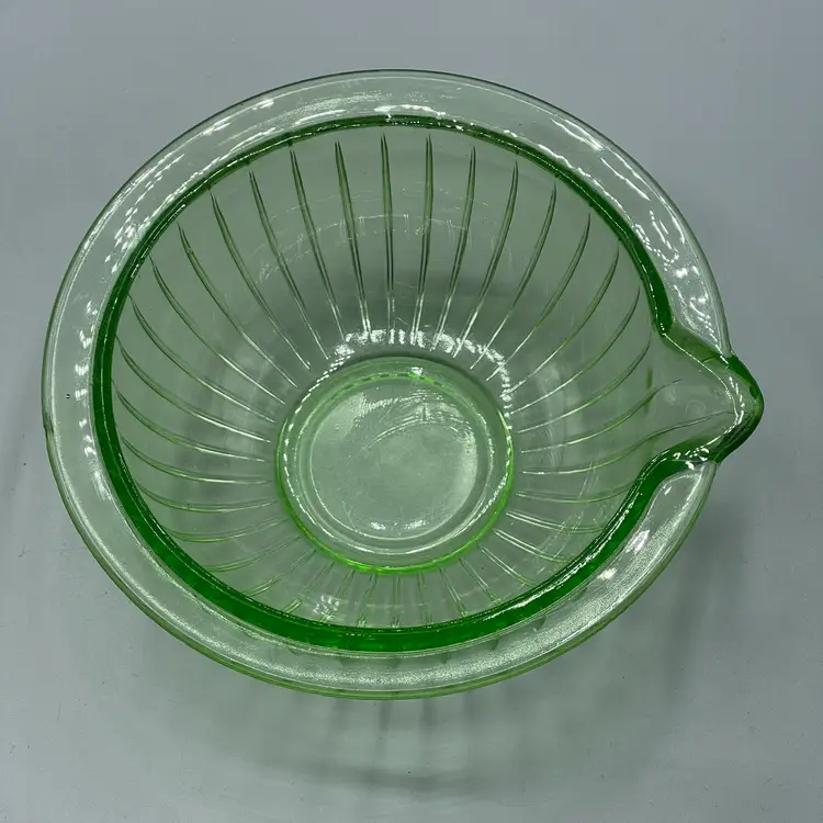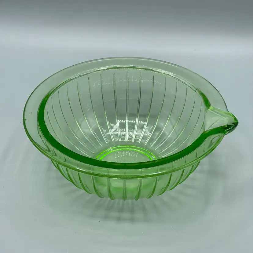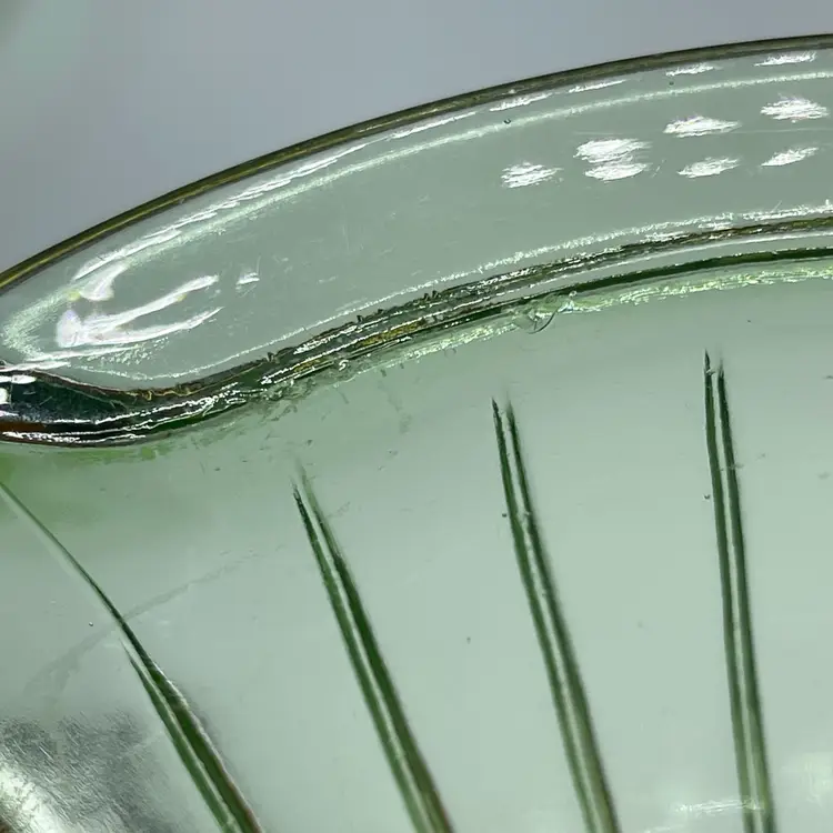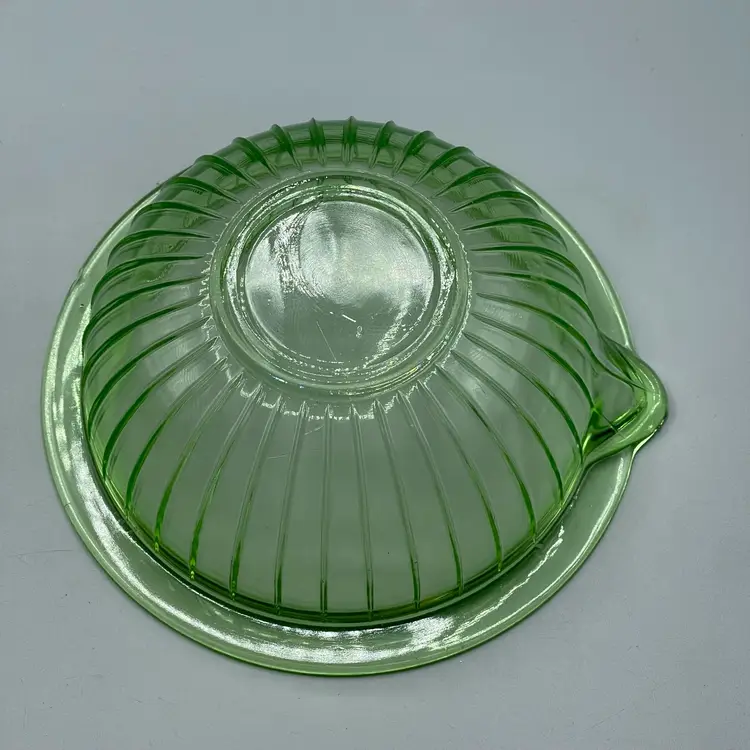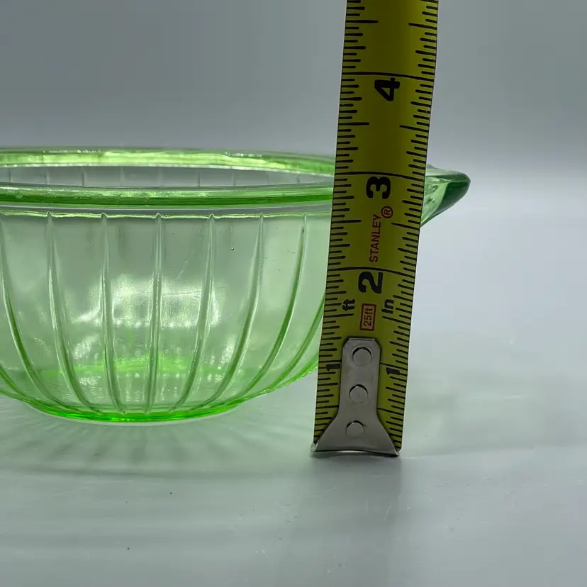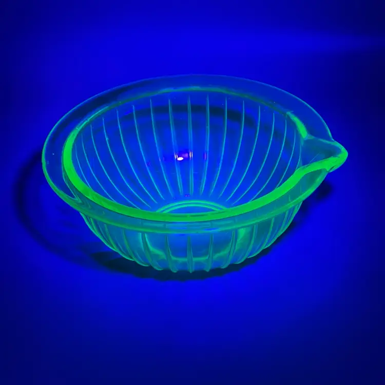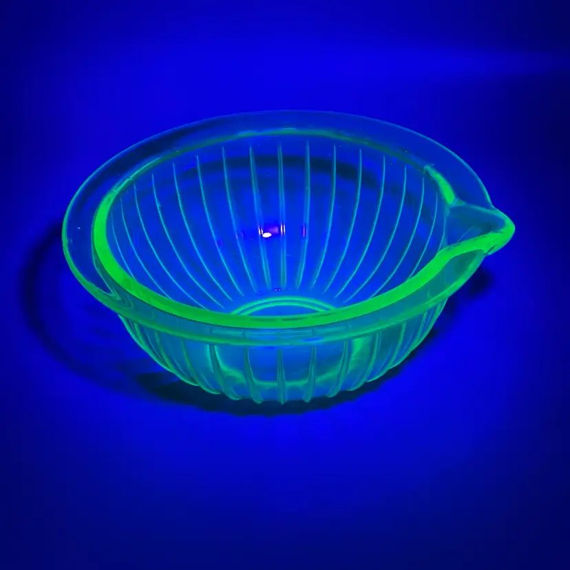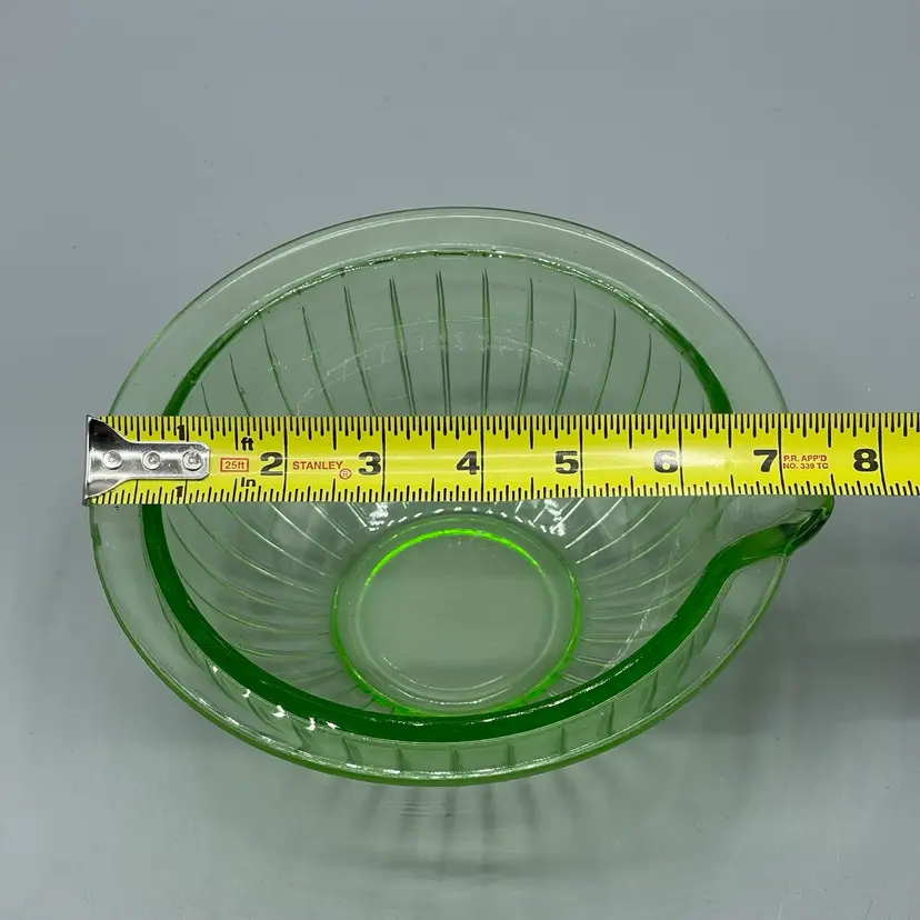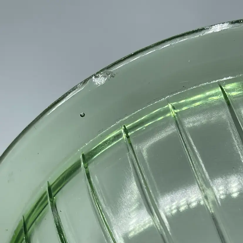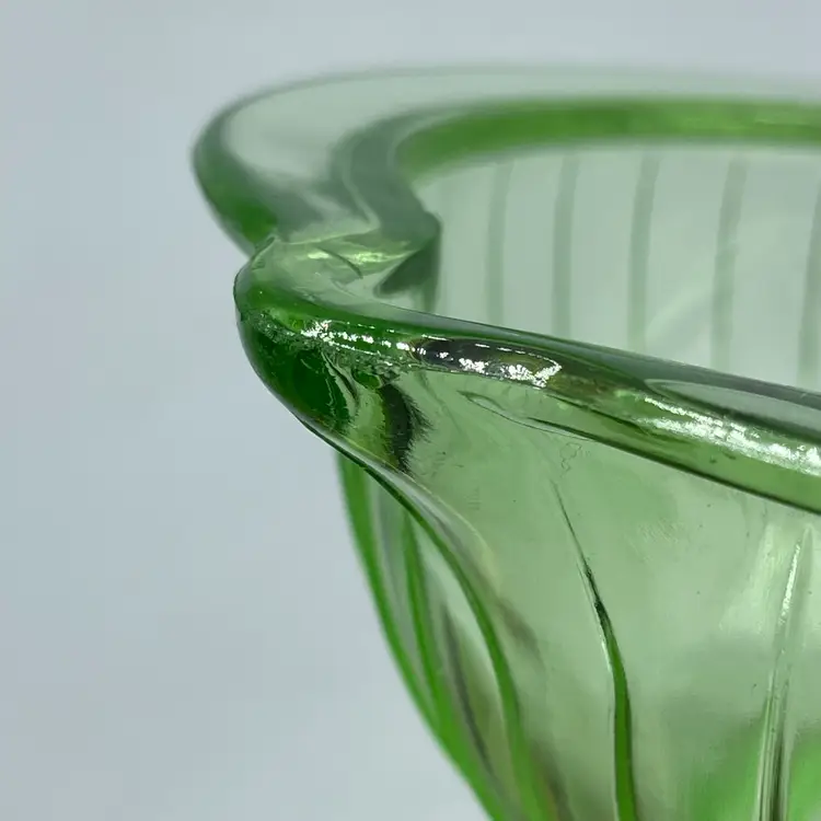 SOME CHIPS. Glows green under UV. About 7-1/2 inches across at widest and 2-7/8 inches tall.