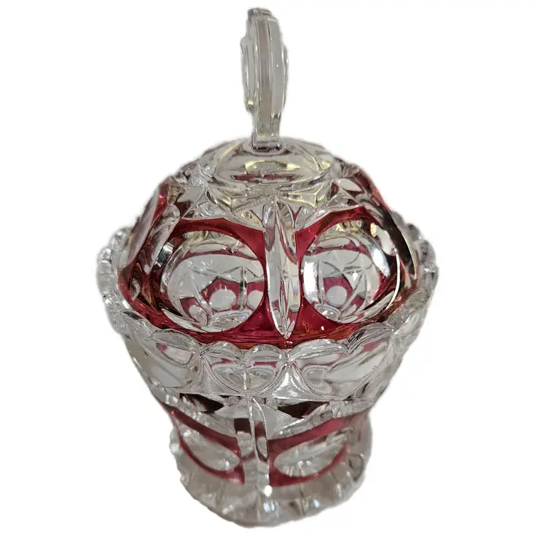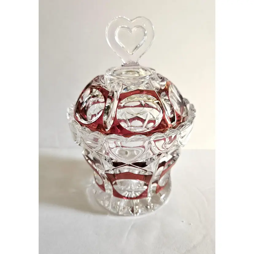 Nice vintage covered dish made in Germany with a heart finial and hearts around rim. In very good condition, no cracks or chips. A great addition to any glass collection!