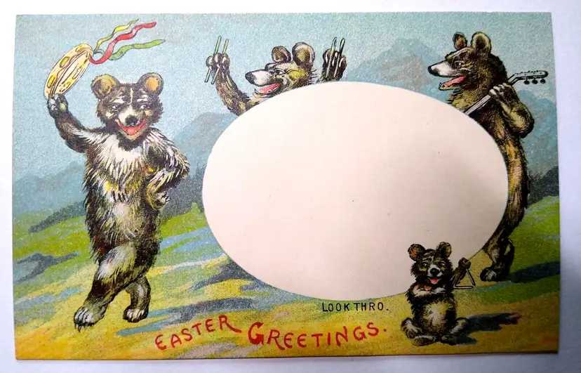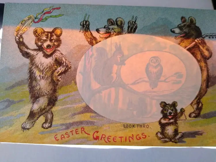 Number of Items in Set: 1 Unit of Sale: Single Unit Artist: Unknown Occasion: Easter Size: Standard (5.5 x 3.5 in) Signed: No Custom Bundle: No Year Manufactured: 1907 Material: Paper Original/Licensed Reprint: Original Franchise: Unknown Brand/Publisher: Unbranded Subject: Bears Personalize: No Type: Printed (Lithograph) Era: Divided Back (1907-1915) Theme: Animals, Art, Greetings, Holiday, Hold To Light, Bears, Musicians, Egg, Owl, Squirrel Features: Divided Back, Hold-to-Light Time Period Manufactured: 1900-1919 Country/Region of Manufacture: Germany Postage Condition: Unposted