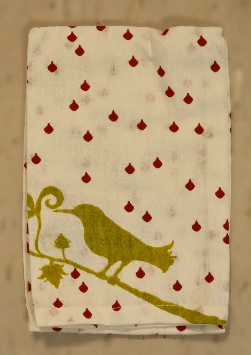 - bird print cotton hand towel (new and rolled with a bow)