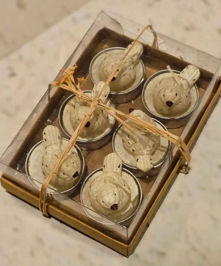 - a set of six bird-shaped tea light candles new in box