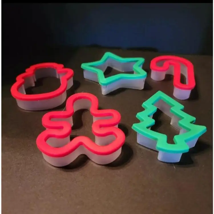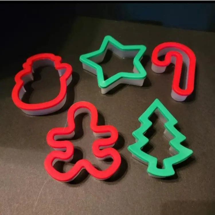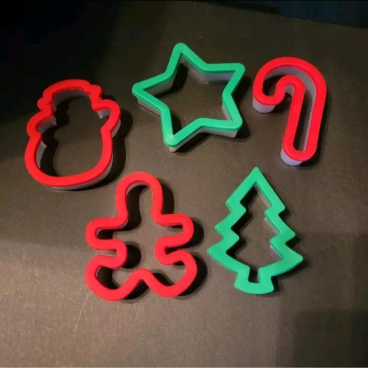 Get festive with this 5-piece holiday cookie cutter set featuring a snowman, star, candy cane, gingerbread man, and Christmas tree. Perfect for holiday baking fun!