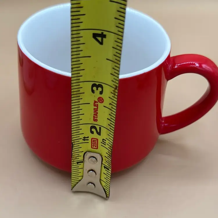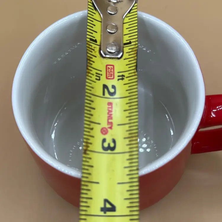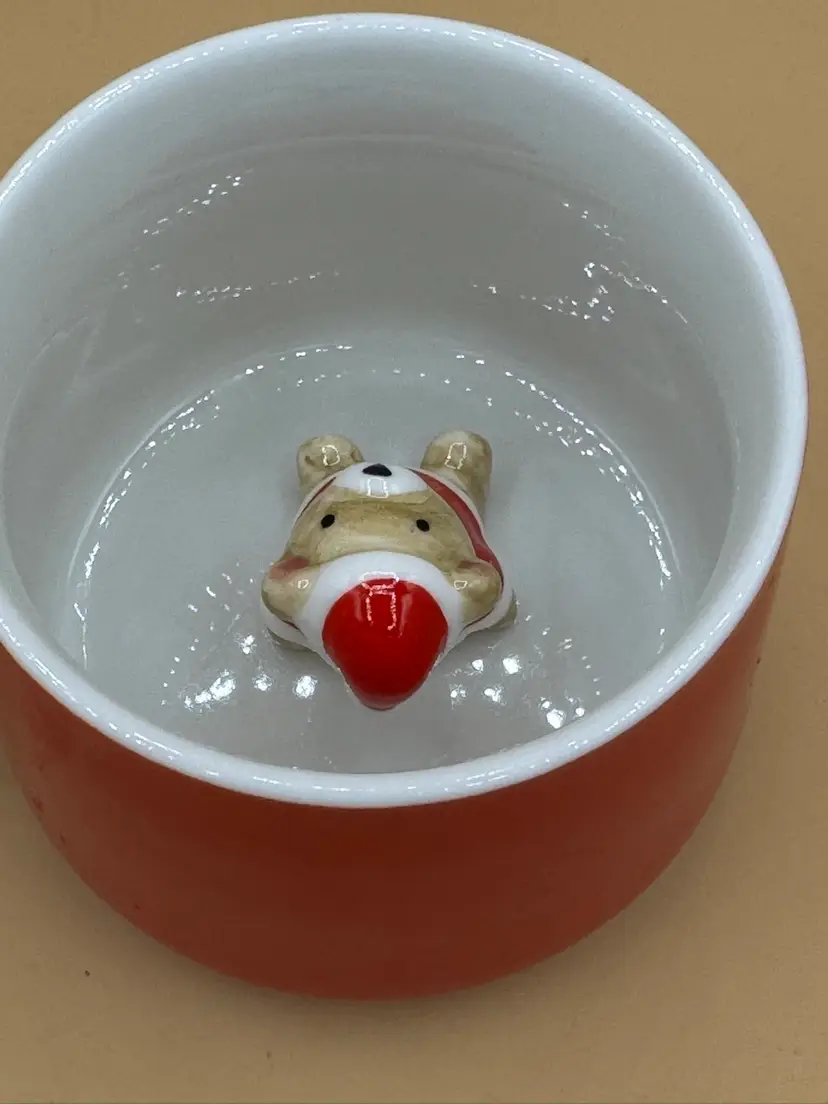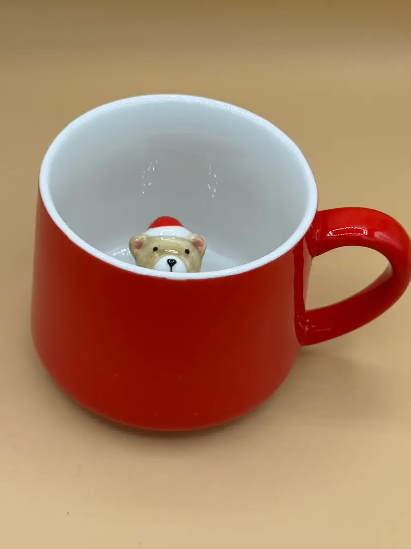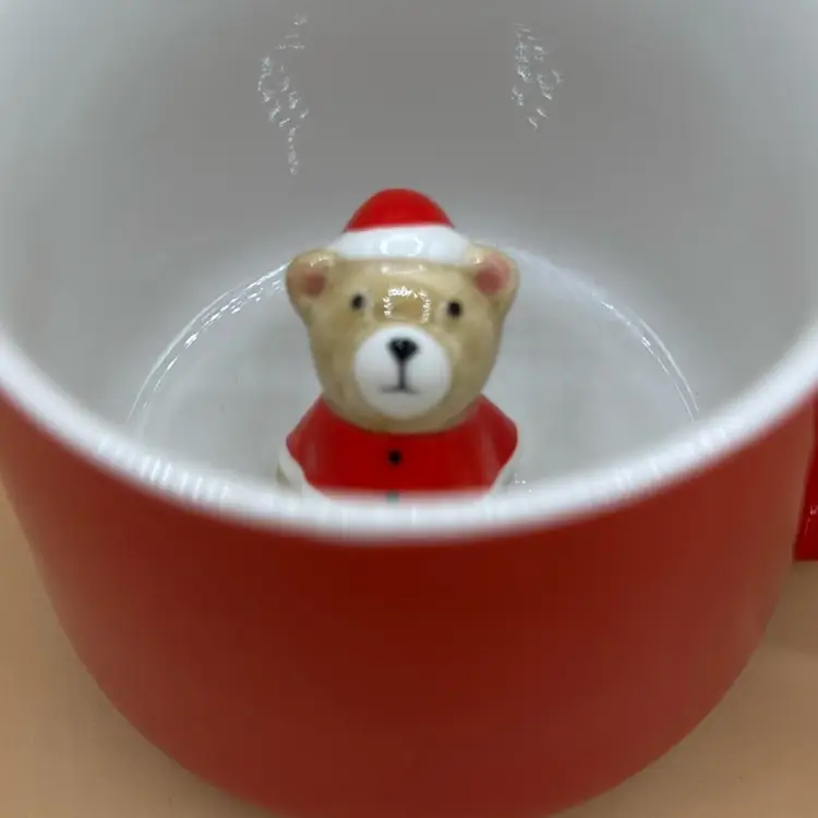 This cute holiday mug has a surprise teddy bear inside. It measures 3” tall with a 3 1/2” diameter.
