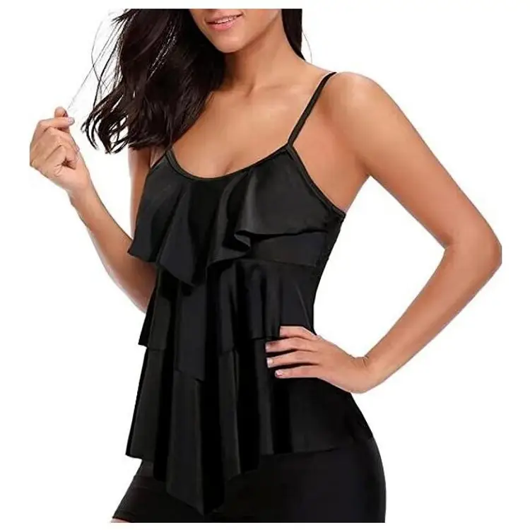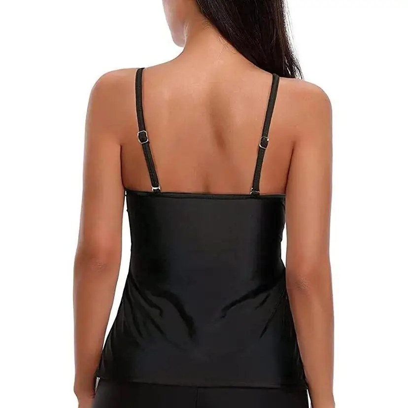 Tankini Swimsuits for Women Tummy Control: The black ruffled tankini top is long enough to cover your tummy and minimum to show your waist and hips. Push Up Swim tank top: Supportive and adjustable shoulder straps give you a full straight back. Comfortable fabric is soft to skin and enables you to be confident for hours under the sun. Removable padded soft cups provide comfortable support. High quality fabric for a long lasting fit offers good shape. Brand: Holipick color: black size: large item is new with tag