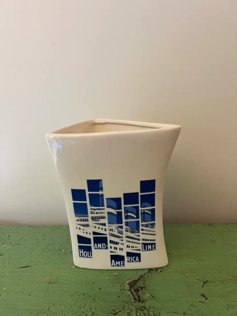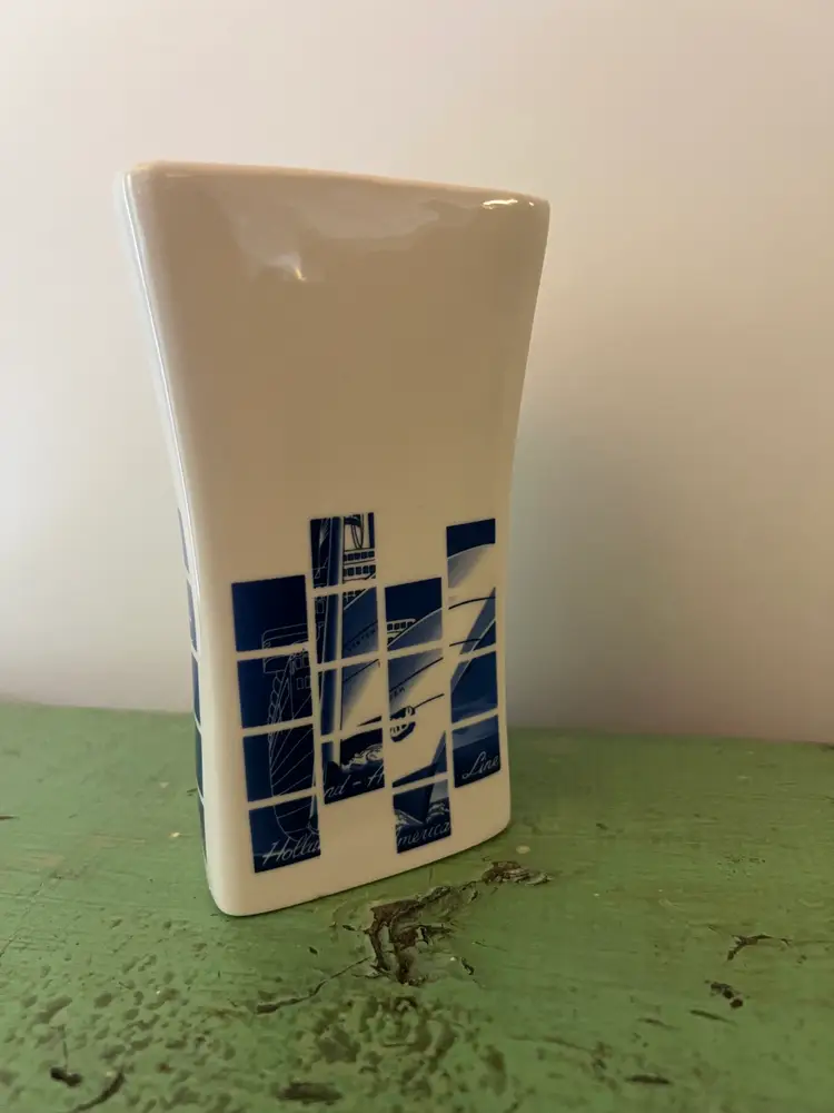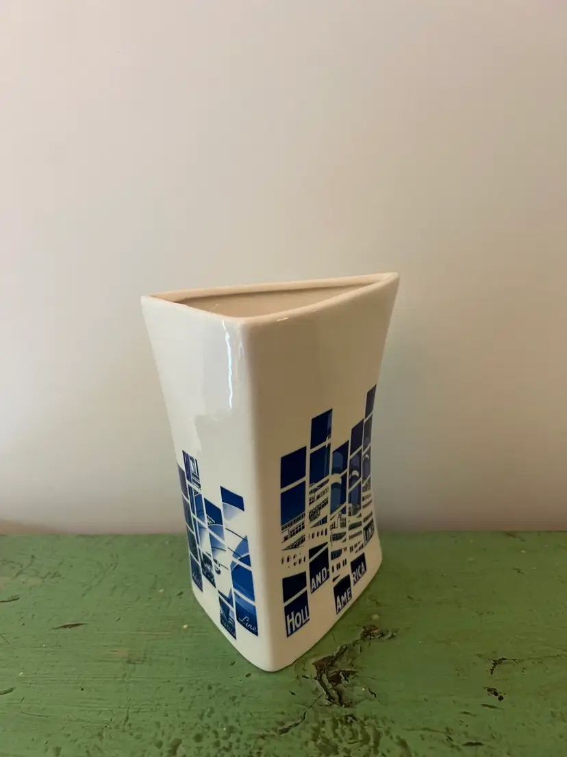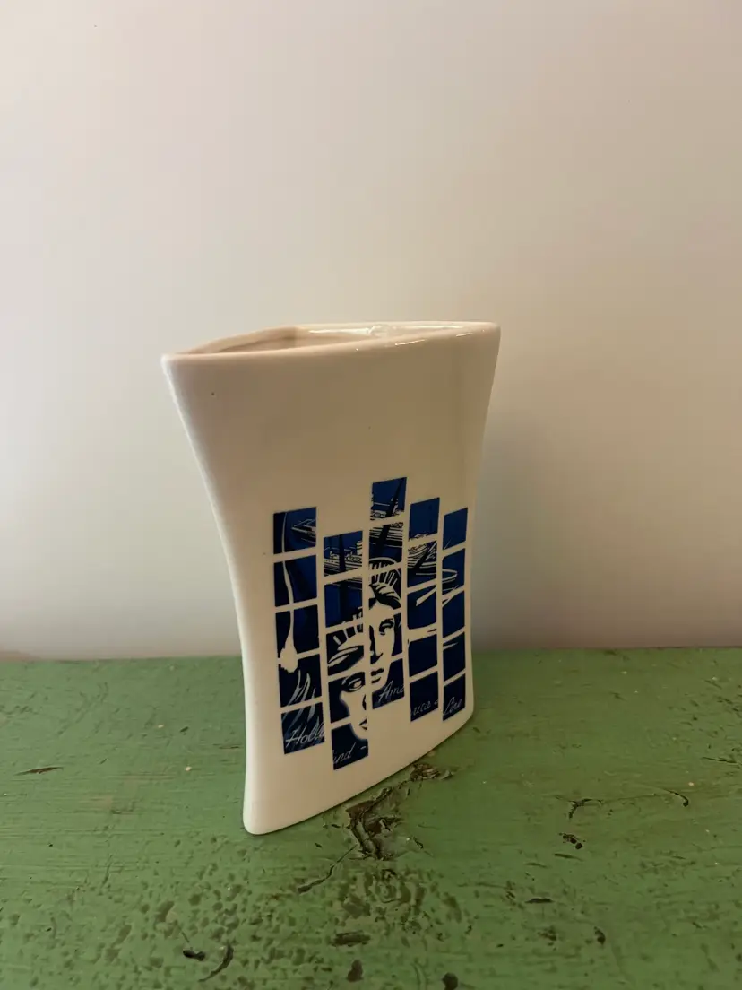 Ceramic souvenir vase- Holland America line. Geometric design with the Statue of Liberty. 5.75" tall