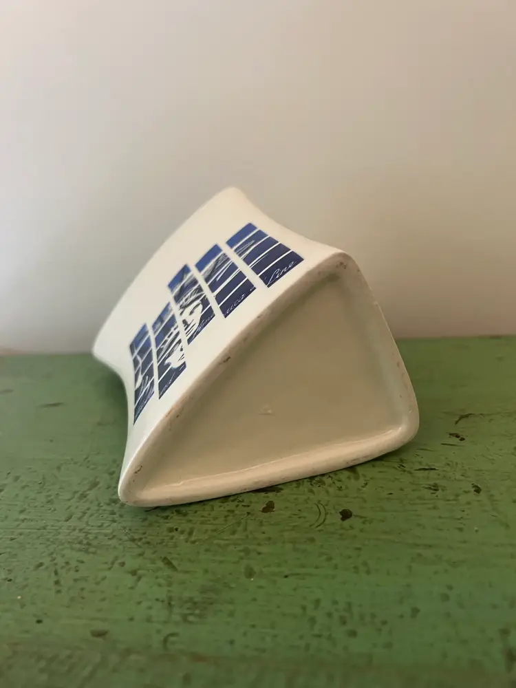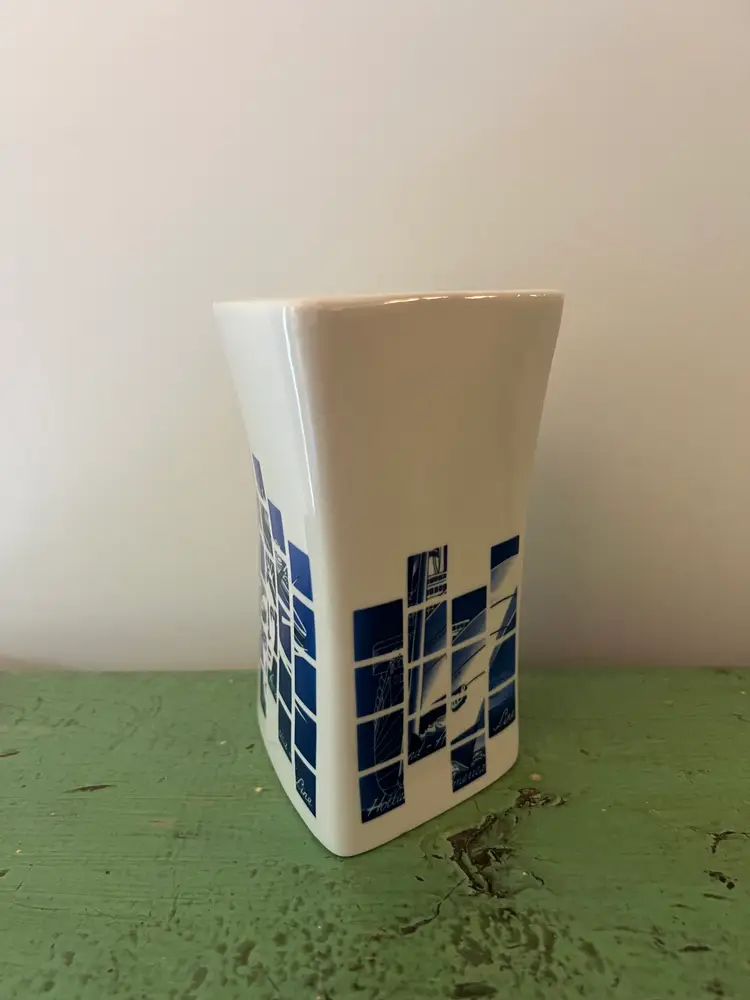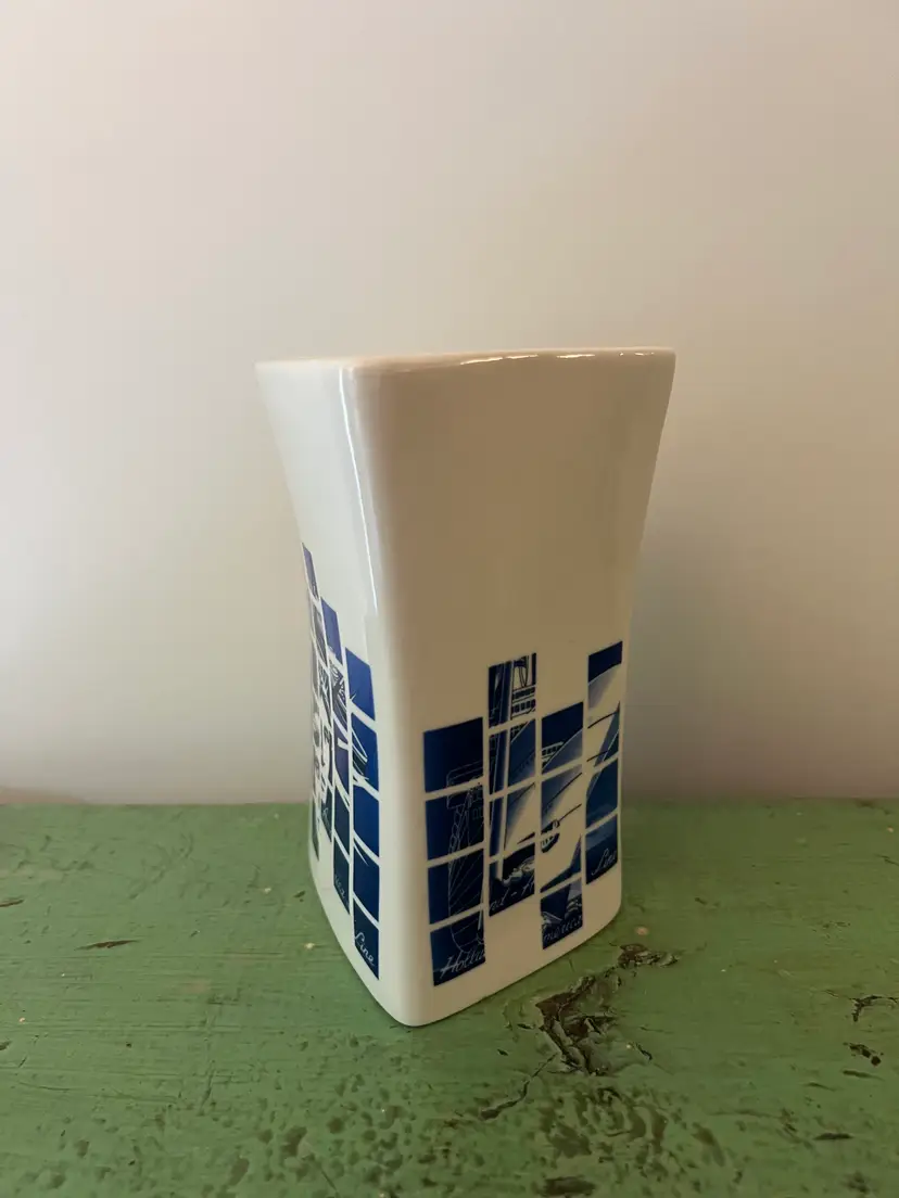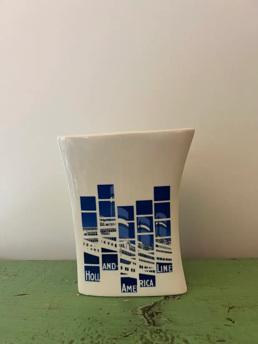 Ceramic souvenir vase- Holland America line. Geometric design with the Statue of Liberty. 5.75" tall