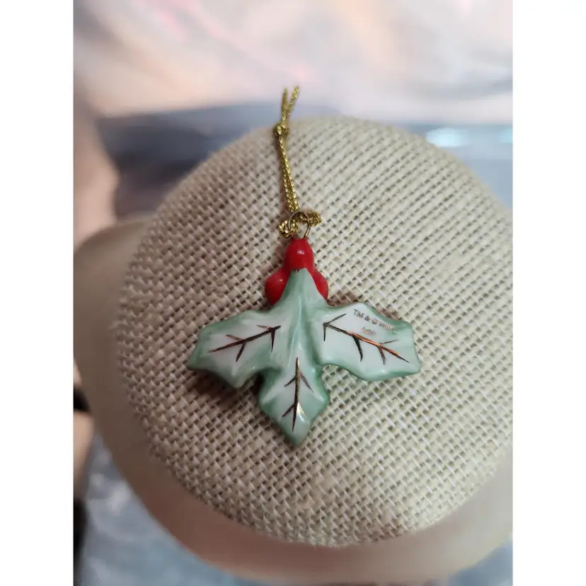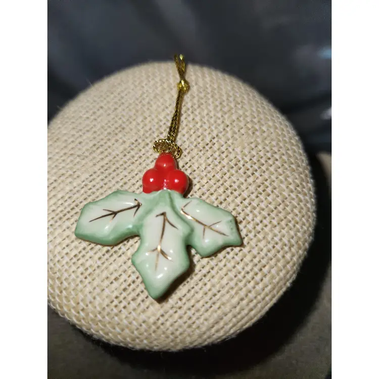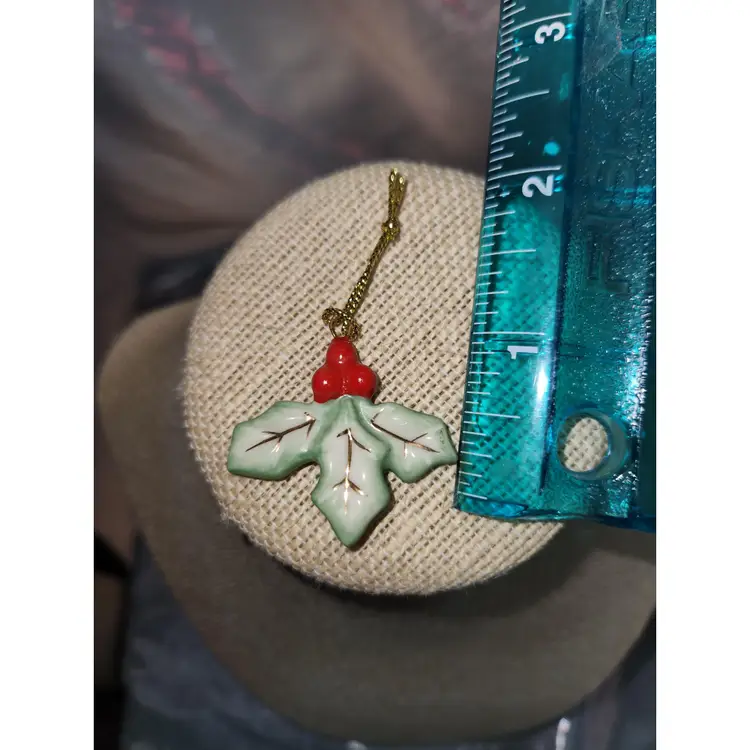 Holly Ceramic Ornament Measures 1 1/2 inches tall and wide Has marking of TM & (C) WBEI (s05) No chips or cracks