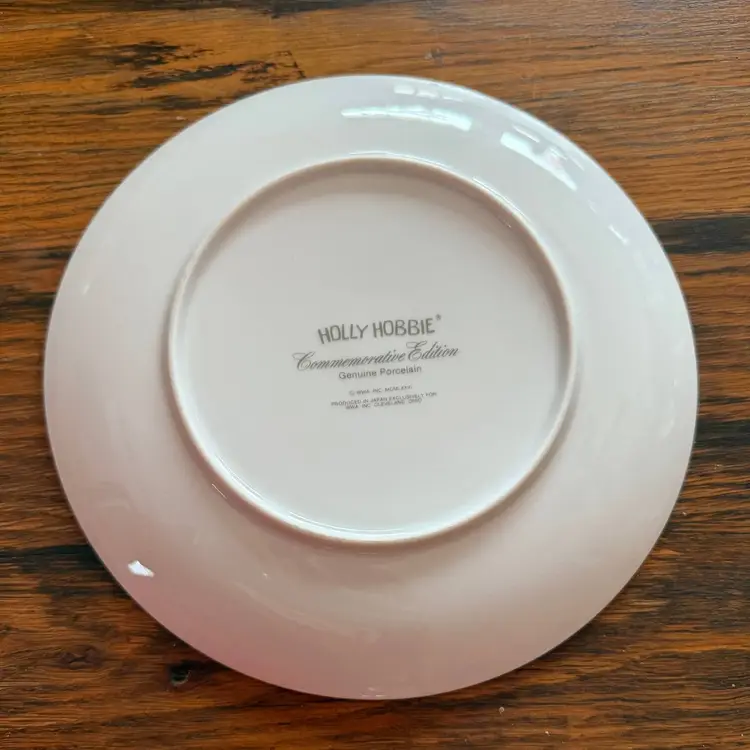 🌼 Item Details Maker: Holly Hobbie / American Greetings Series: Commemorative Edition Material: Genuine porcelain Design: Holly Hobbie girl illustration & poem Rim: Gold trim Size: 8 inches Made in: Japan Year: Late 1970s–1980s Condition: Excellent vintage condition — no chips, cracks, or crazing. Beautiful shine and clean graphics.