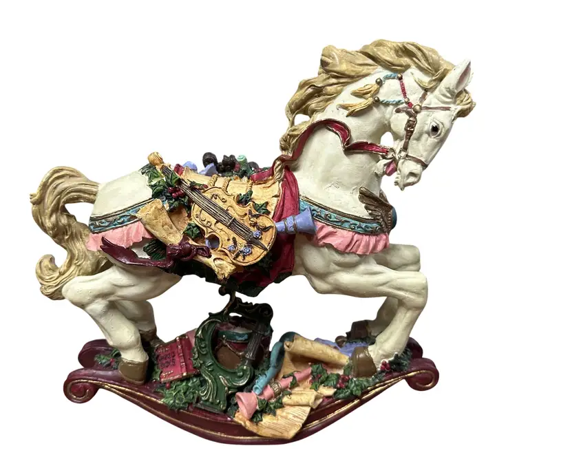 Holly Tree Porcelain Rocking Horse with Musical Instruments & Holly and Berries