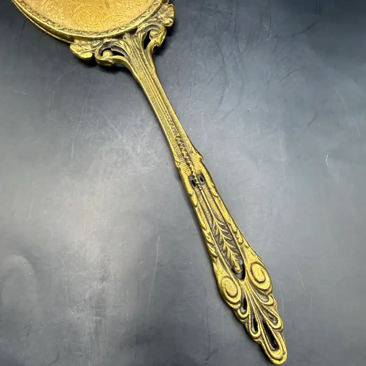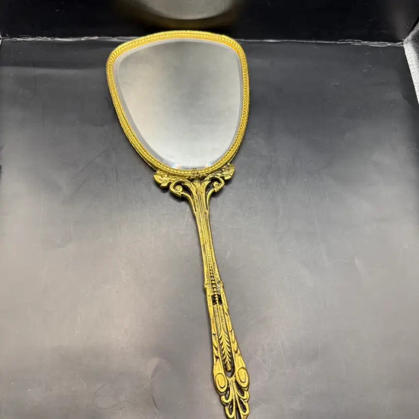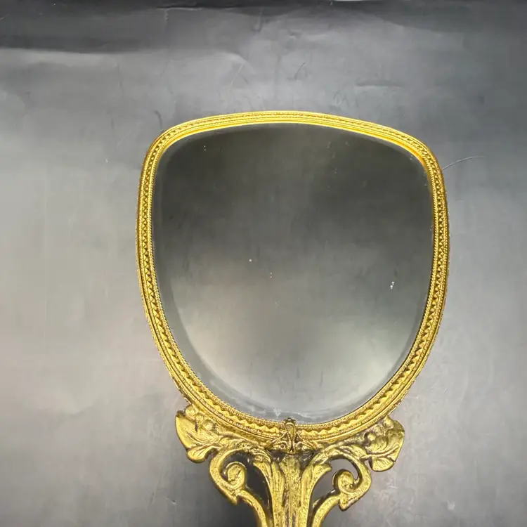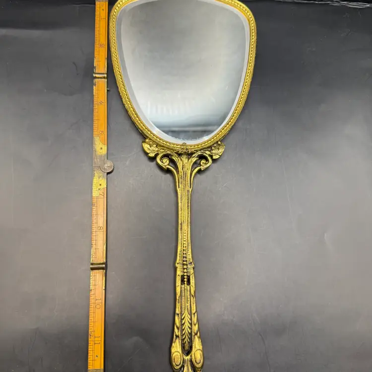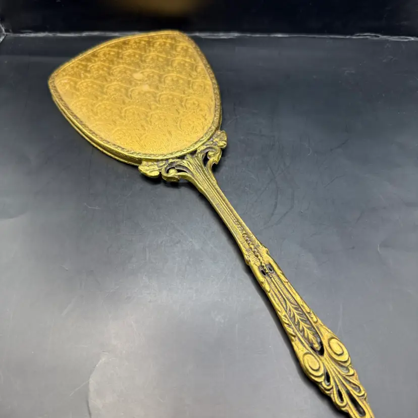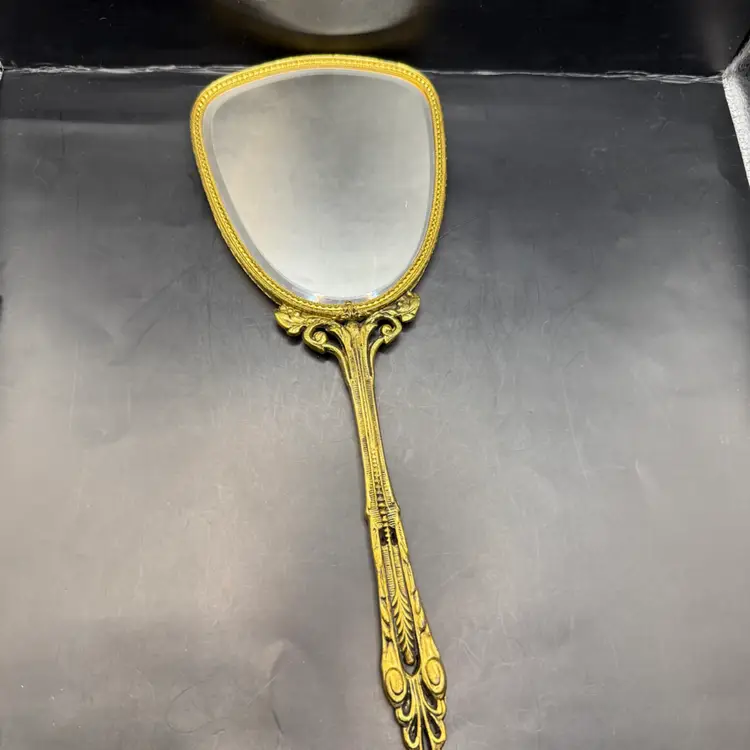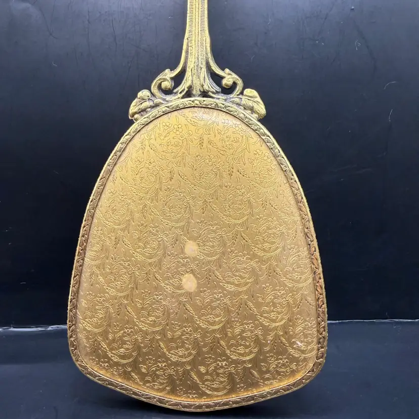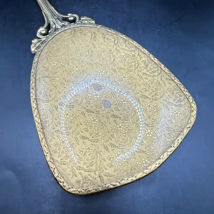 Very good vintage condition with a could minor spot of discoloration on the plastic covering. Mirror is in fantastic condition.