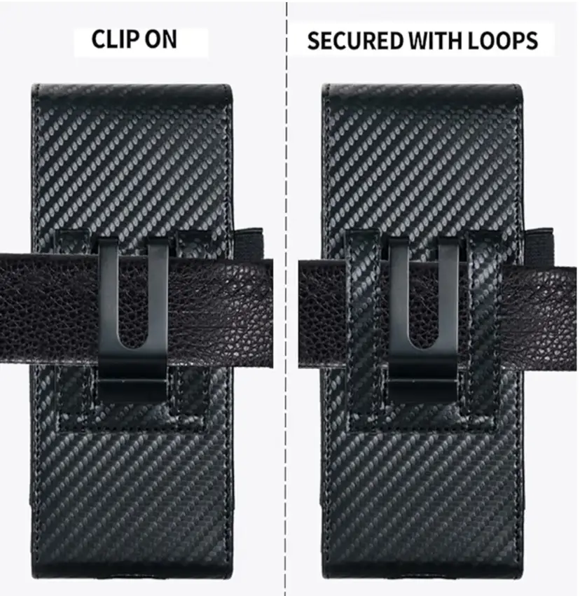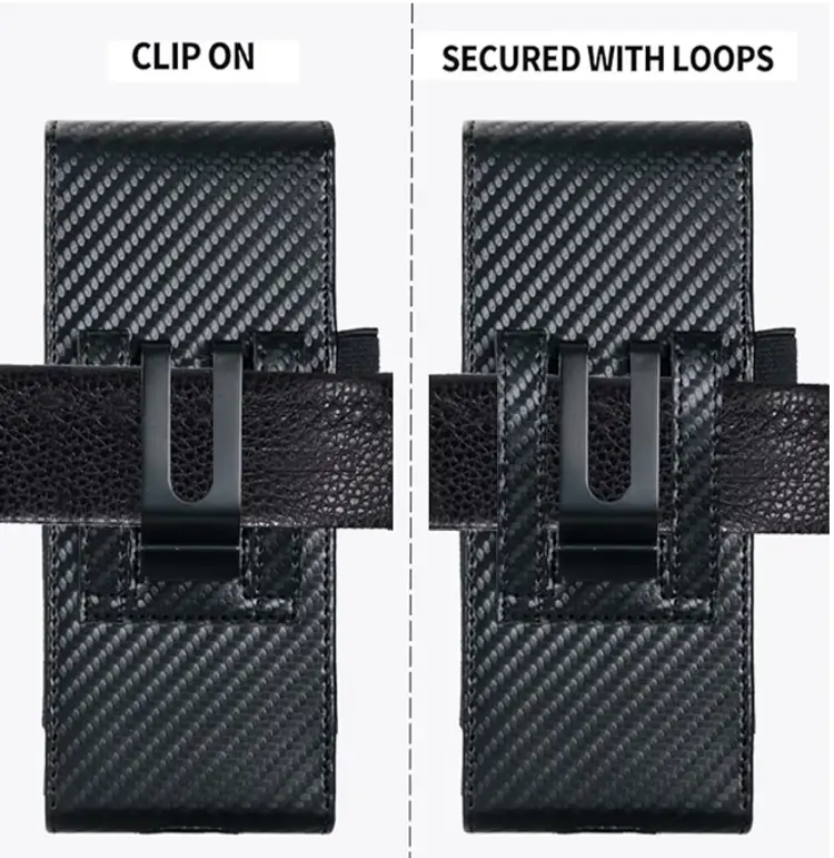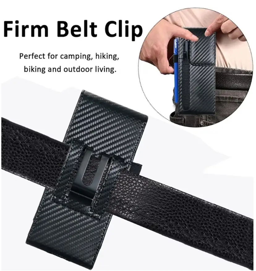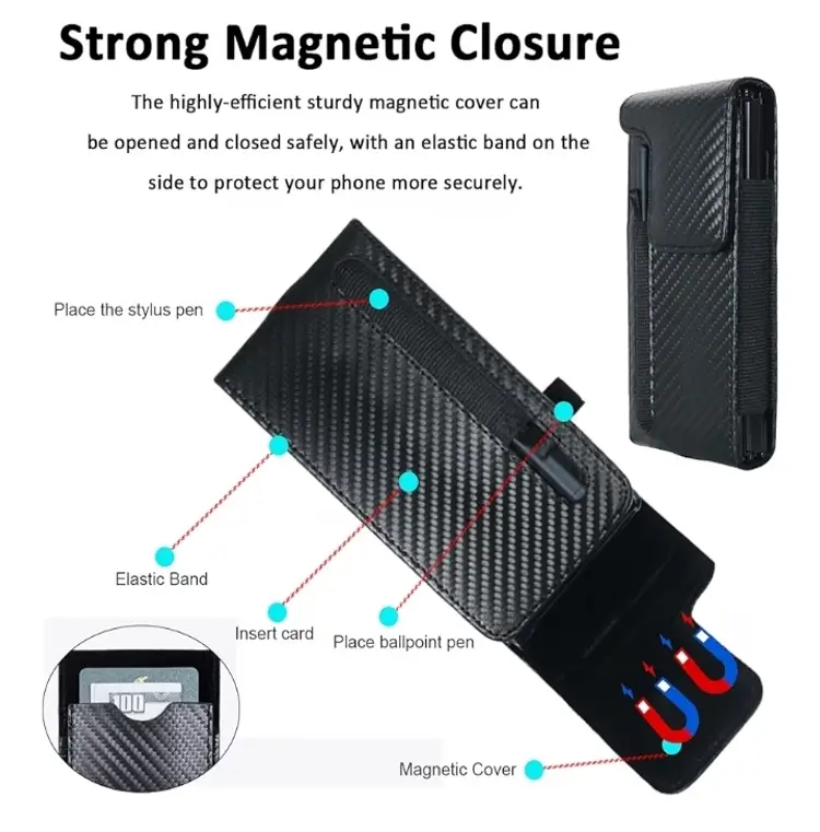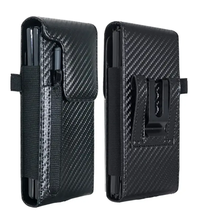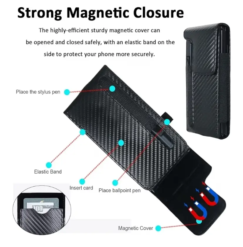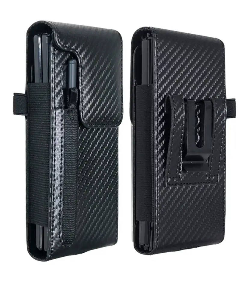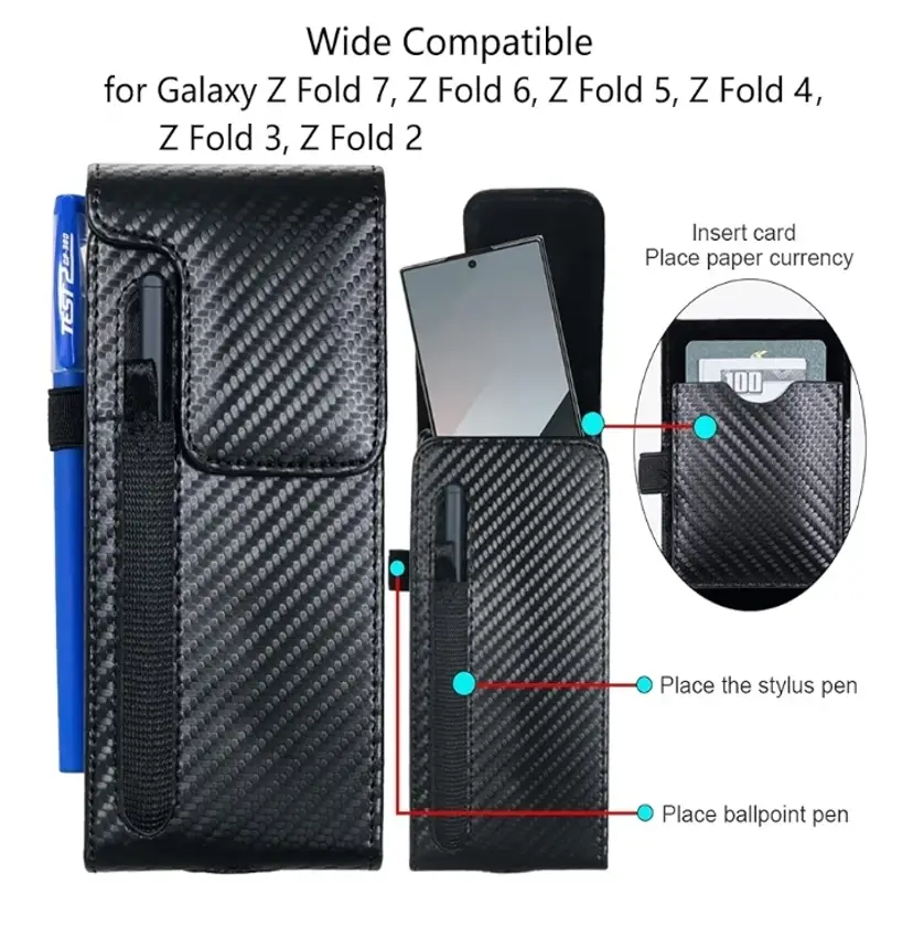 Holster Pouch for Samsung Galaxy Z Fold 7/6/5/4/3 with S Pen Holder & Belt Clip & Card Holder, Luxury Carbon Fiber Leather Holster Case with Belt Loop&Metal Clip&Magnetic Closuer (Vertical)