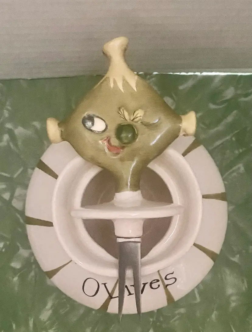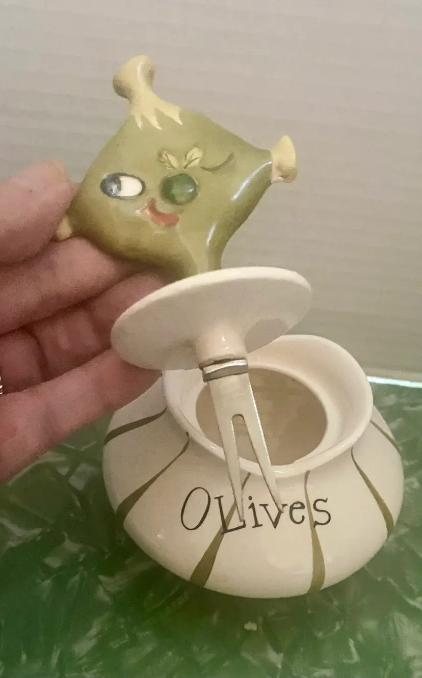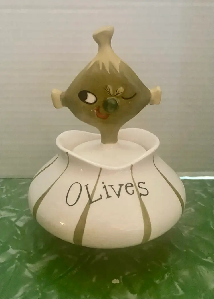 Cutest little pixie condiment jar. Usual crazing for age. No chips or cracks. Just a cool little quirky piece for the Holt Howard fans.