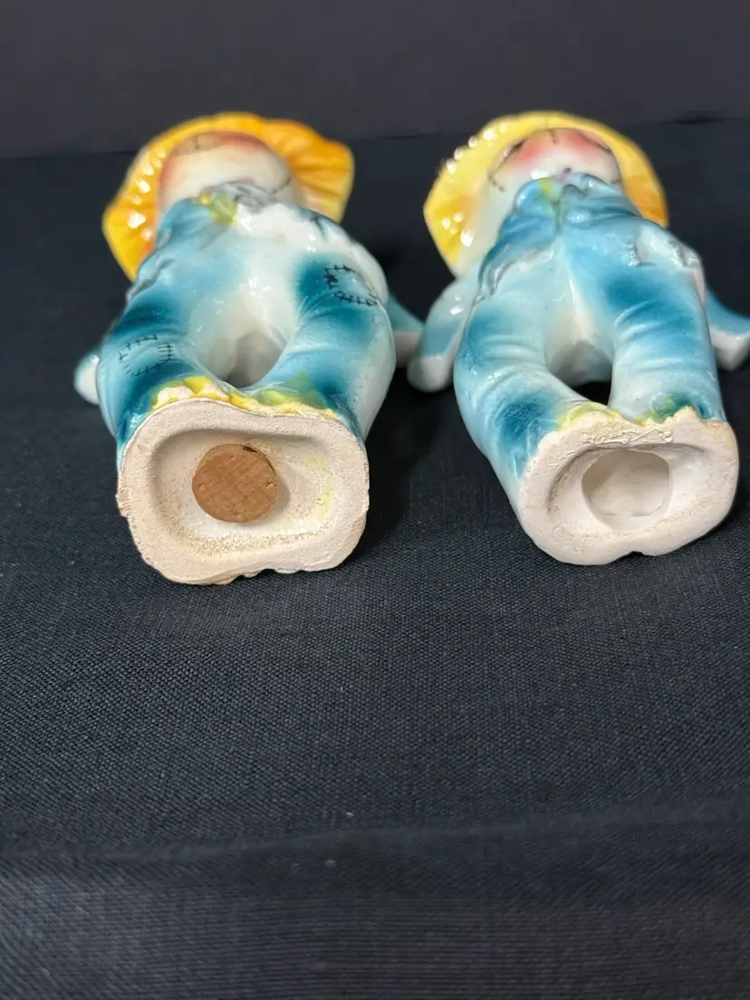 Hand painted in 1950’s. In great shape. Stands 51/4 tall and 51/2 wide. Missing one cork. Rare to find complete in great condition. I refund shipping overages.