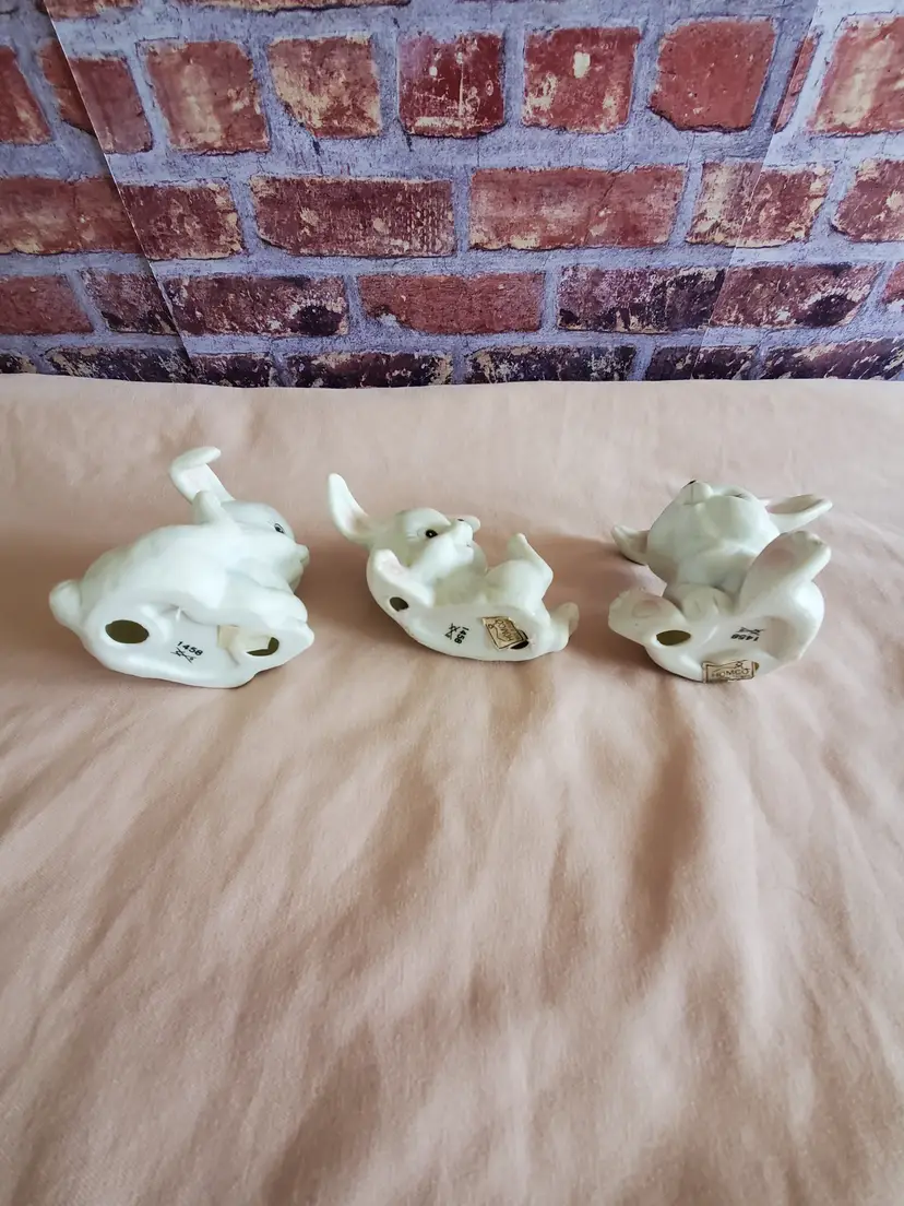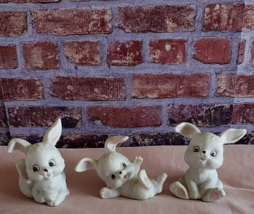 Set of 3 Homco Bunny figurines. These stand about 3.5" tall. These are very cute and display nicely, perfect addition to your Easter decor. Good condition (no chips or cracks), 2 out of the 3 still have their stickers.