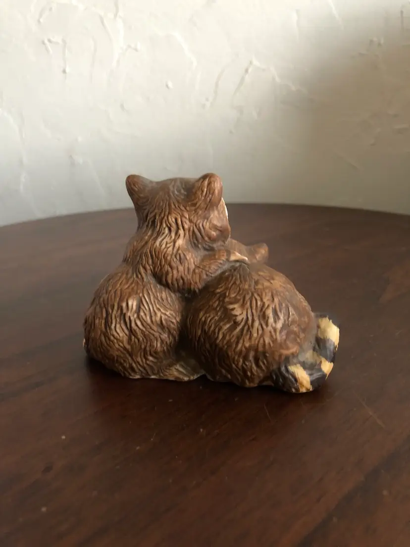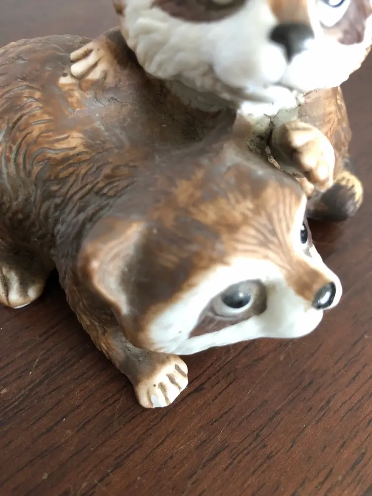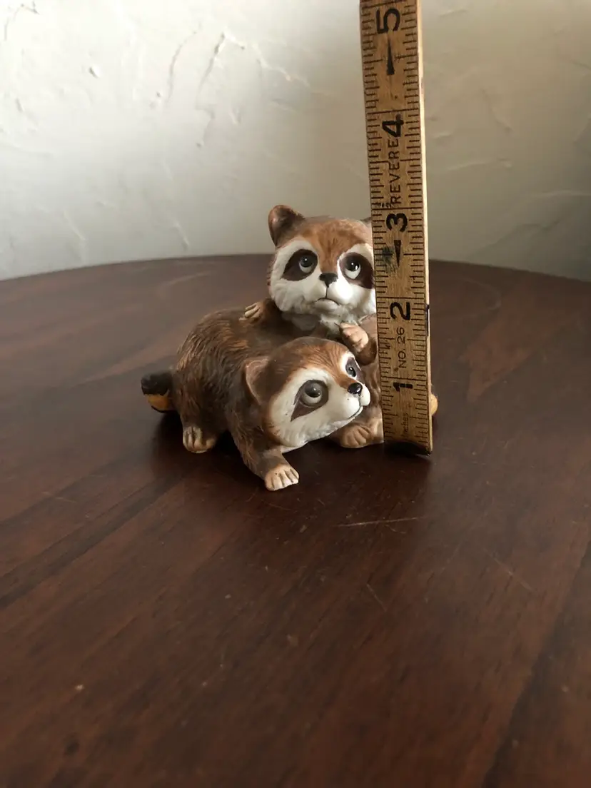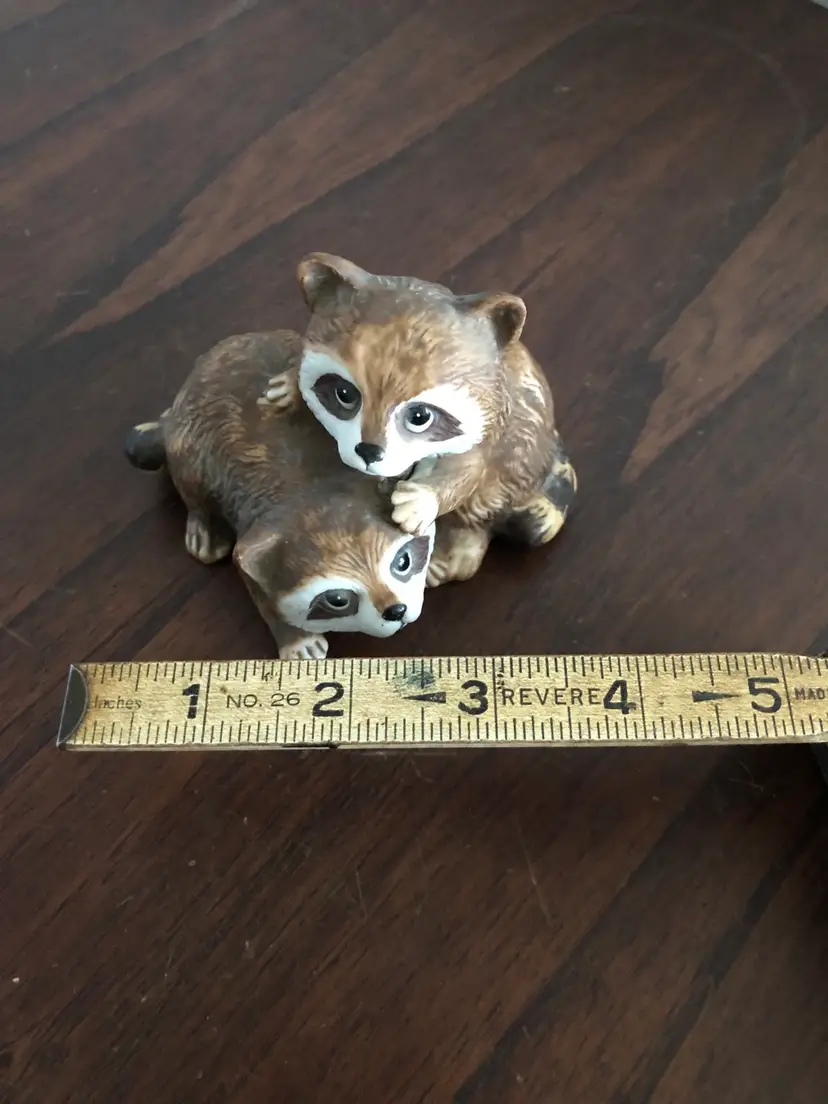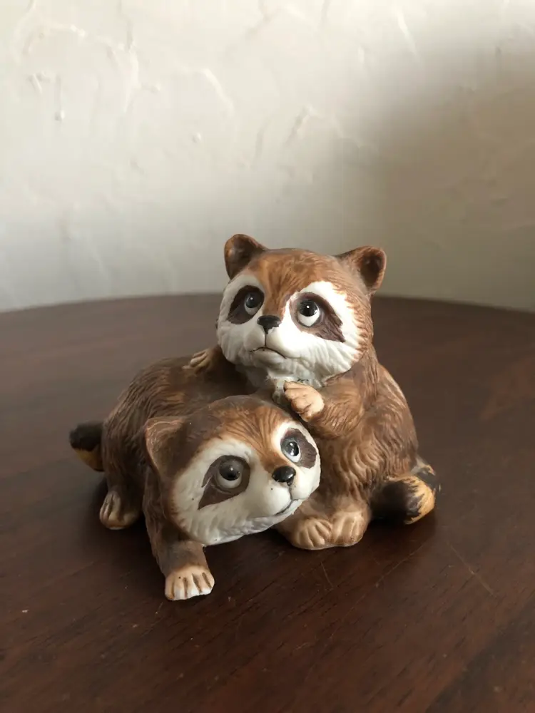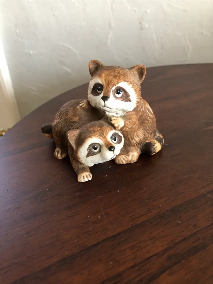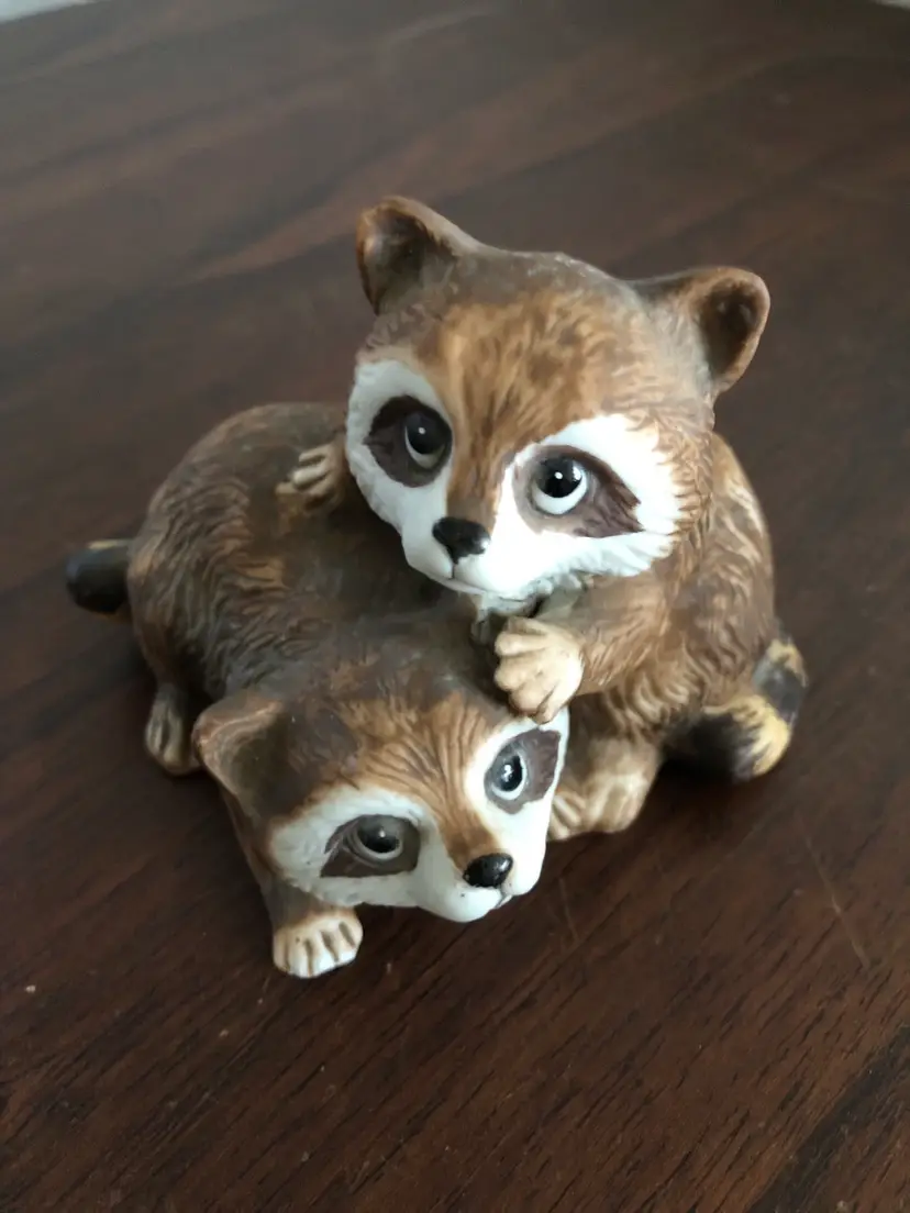This adorable Homco raccoon figurine is about 4” wide and 3” tall. Niknax mascot! One tiny chip on the foot (barely noticeable), otherwise excellent condition.
