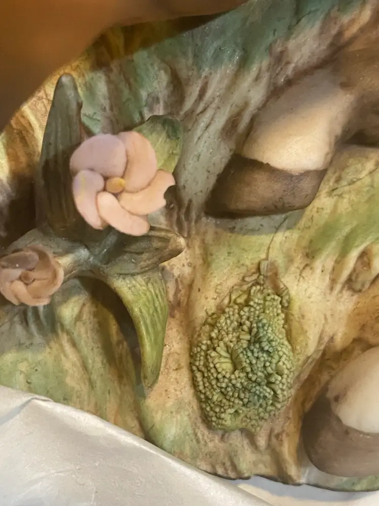 Beautiful hand-painted porcelain piece made in Mexico 1981. please review last picture. There is a tiny chip on the flower nothing major barely noticeable. It does not distract from the beauty of this piece.