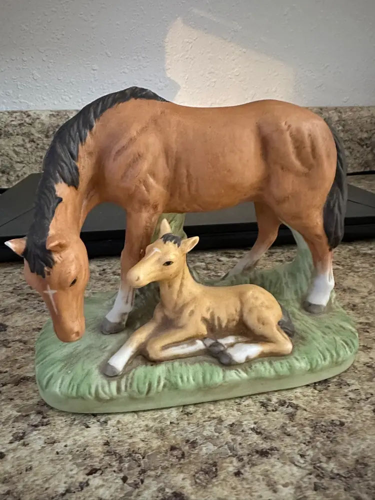 Homco Mother Horse And Fole Figurine No chips or cracks Original sticker Made in china