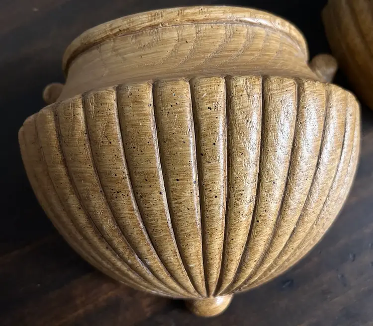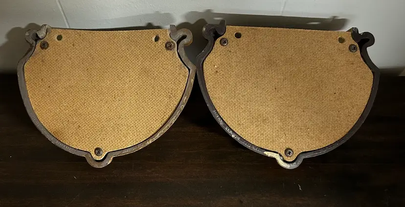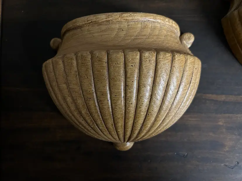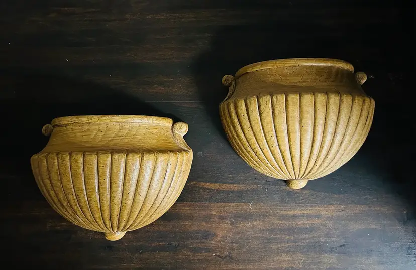 1982 Pair of Homco Wall Pockets. Approximately 7” at widest and about 5” tall. Rounded front but sits flat against the wall. Good condition. Photo shows back of one pocket slightly warped but it is not visible when hanging on the wall. Great vintage decor!