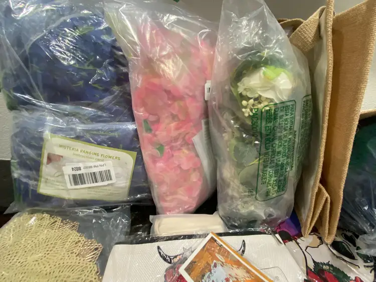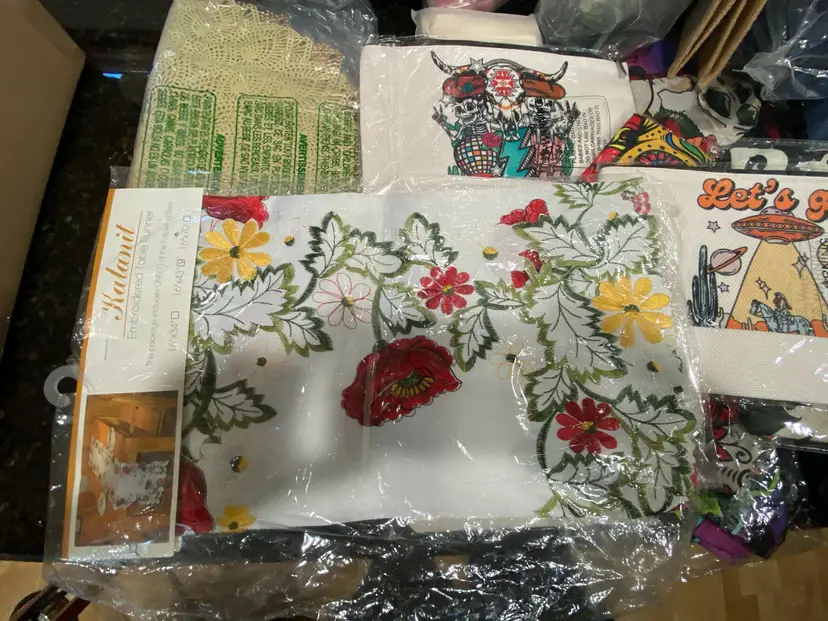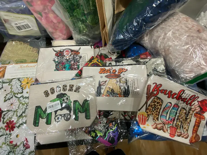Lot of 24 pieces home decor, tablecloths, bath rugs, unique design pillow covers, small designed zipper bags, 3 packs faux greenery flower bags. The pillow covers, zipper bags, tablecloths new in factory packages, other items rugs, faux flowers are in the Amazon returned items green stripe bags, still good sellers. Please let us know if interested in more then one of our listings, we would be glad to check on combined shipping to save money. Thank you for looking at our items. calculated shipping from Michigan 20# 19x15x15