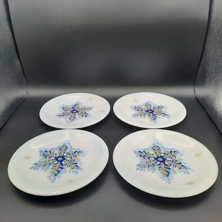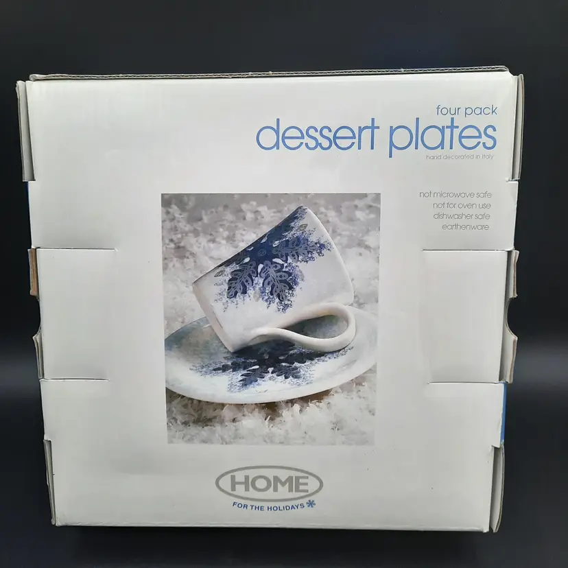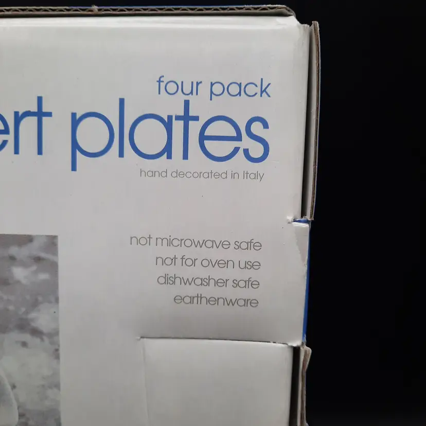 Set of 4 (8") plates handpainted Italy in original box, excellent condition with a few small design flaws