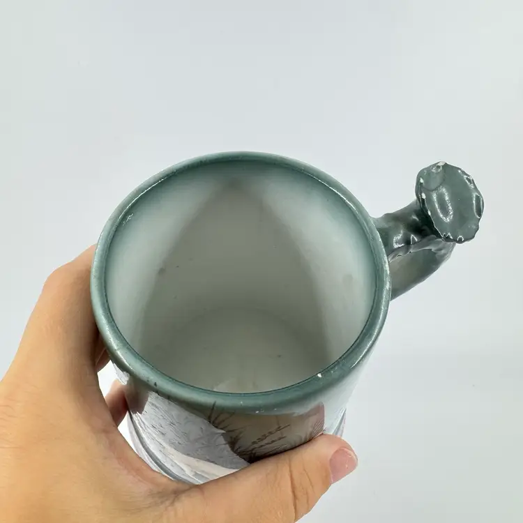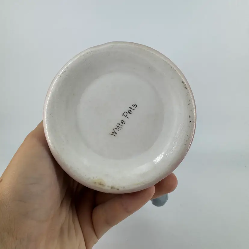 Height is approximately 4.5” No chips or cracks Is naked white pets on the bottom Does have some paint missing