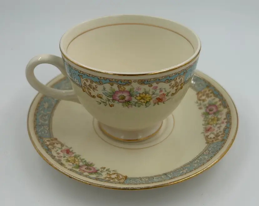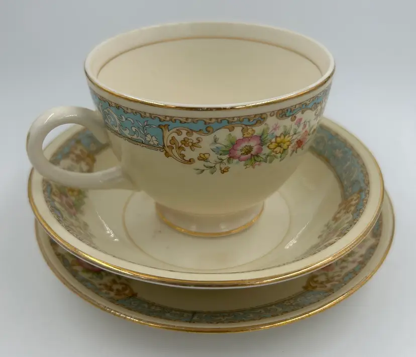 Includes teacup and saucer and small bowl. Bowl has some marks. No chips or cracks. Sm bowl is 5 1/4” across.