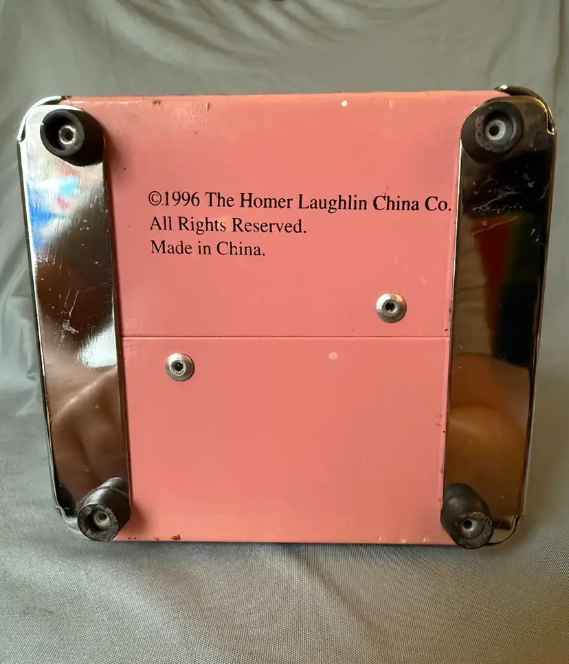 Vintage pink Homer Laughlin art deco style napkin holder. “7h x 4”w No cracks or damage