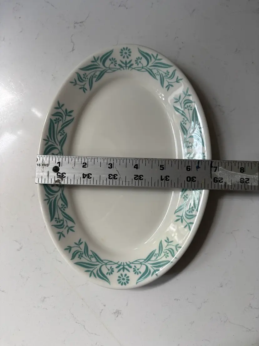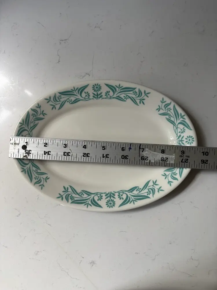 Adorable platter is aprox 9”x6”, with turquoise floral motif. A sweet little addition for a collector of this pattern!