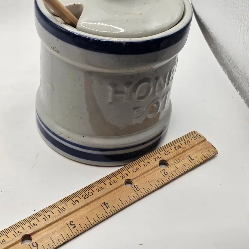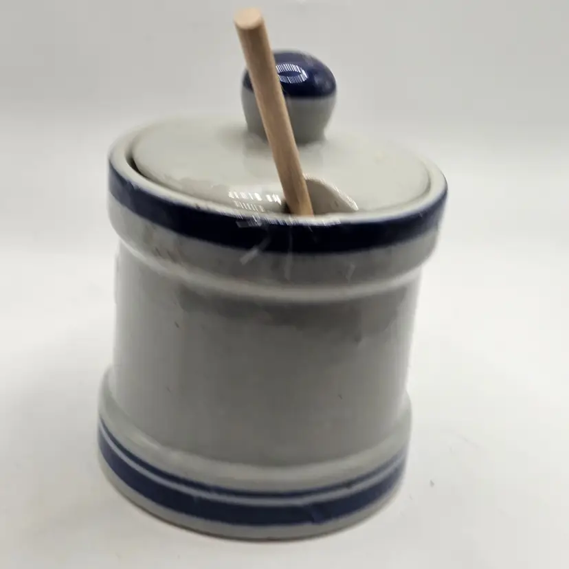 Honey Pot crock with wooden honey spoon and lid