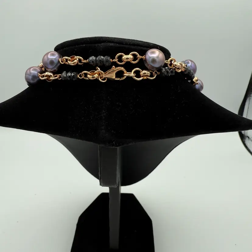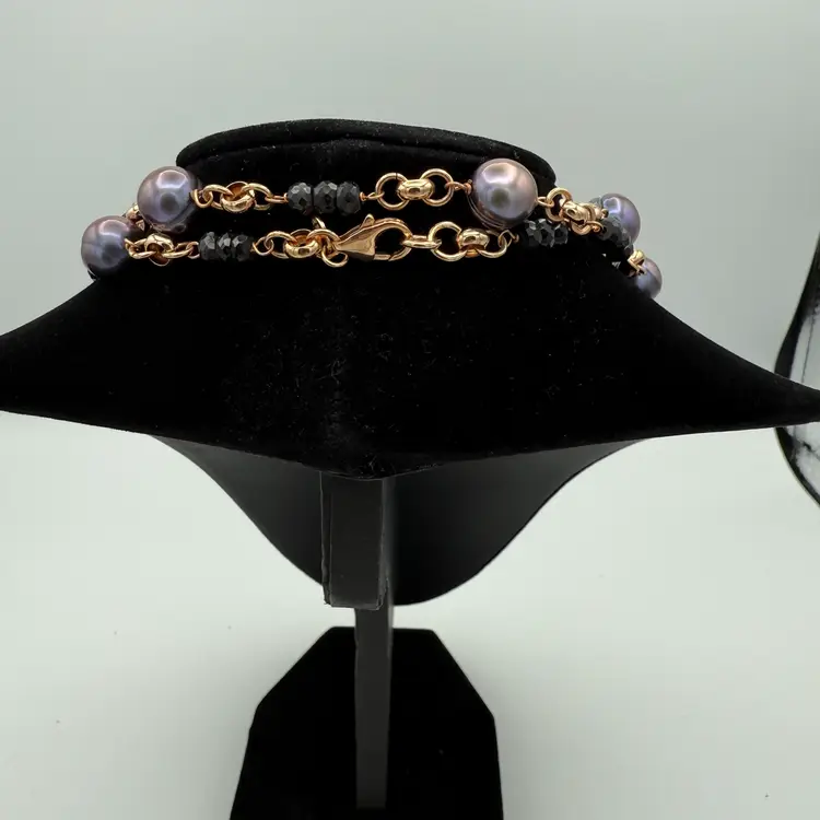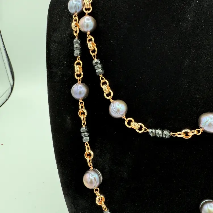 Honora Bronze Italy Black Pearl Crystal Necklace. Necklace has Both Pearls and Crystals Interlaced Between Each Other. Necklace is 34" Long. Stamped Honora Bronze Italy.