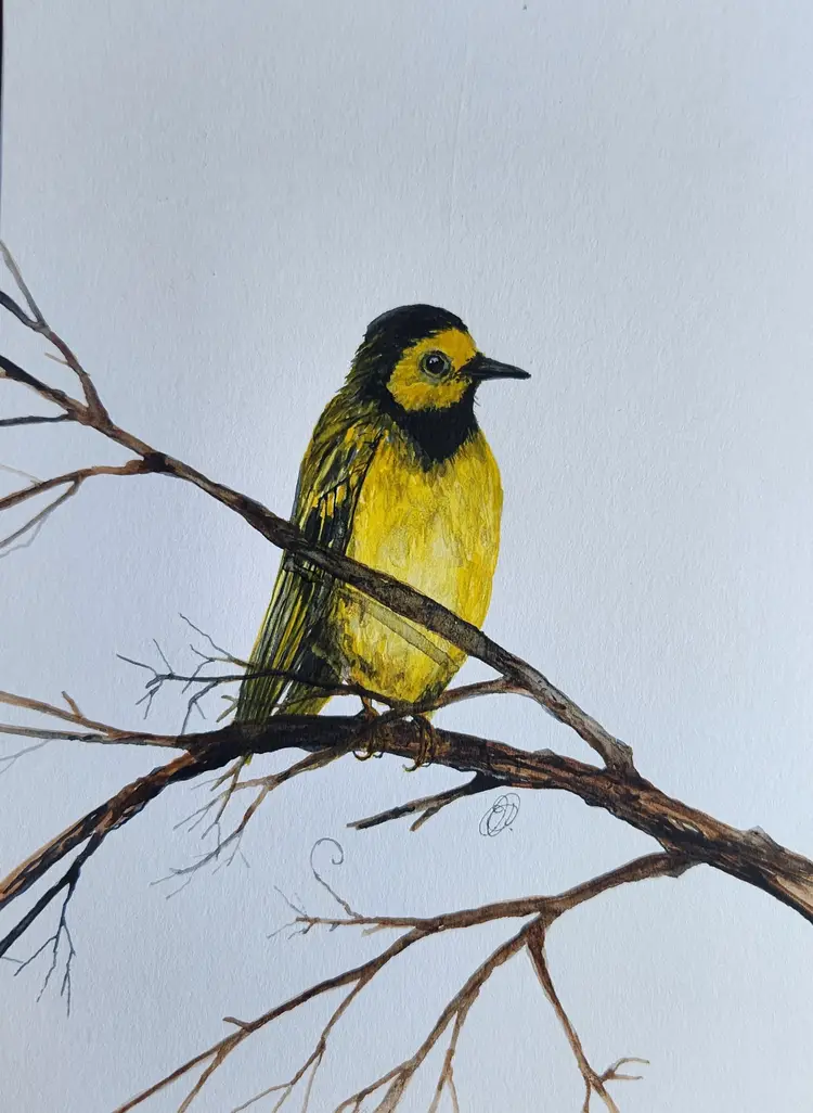 Hooded Warbler watercolor painting Signed By The Artist 5x7 Free Shipping