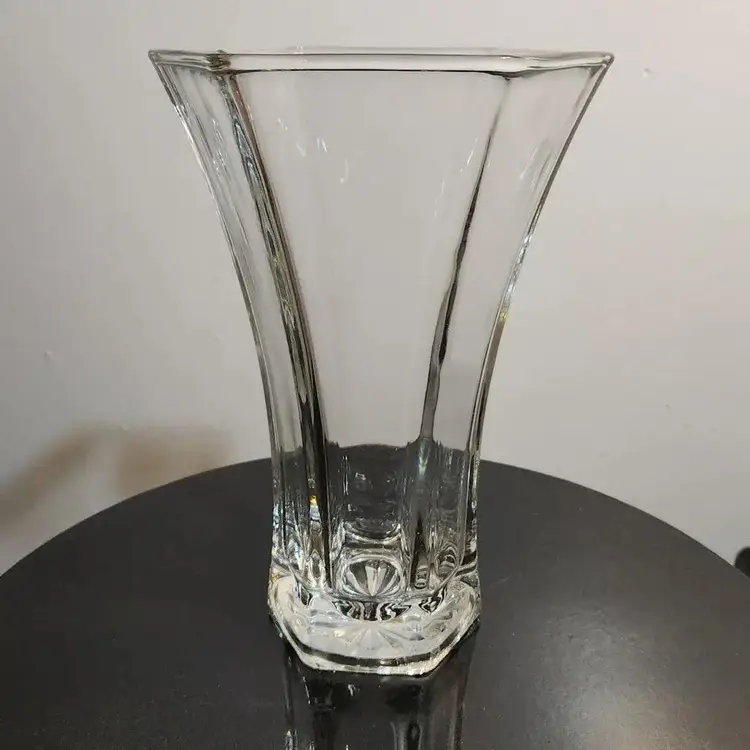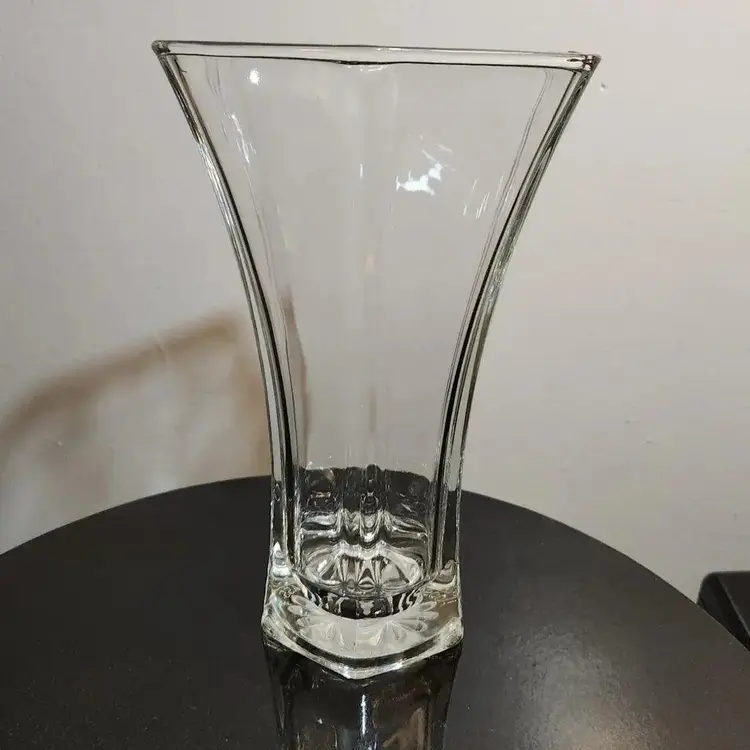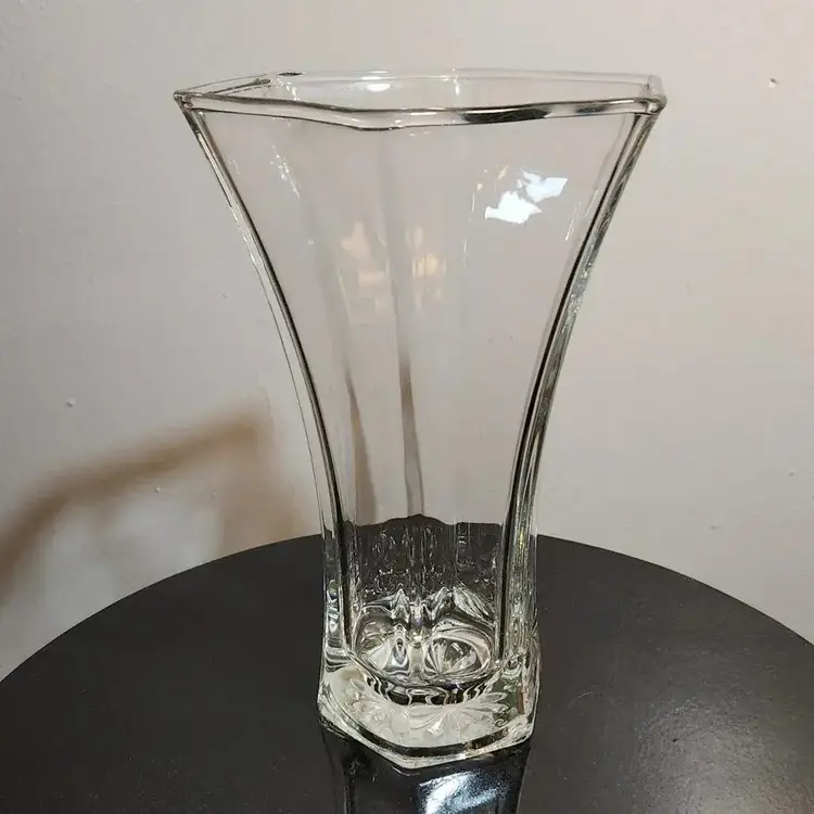 This simple but elegant vase is about 10.25" high x about 7" x 6". It weighs about 4lbs.