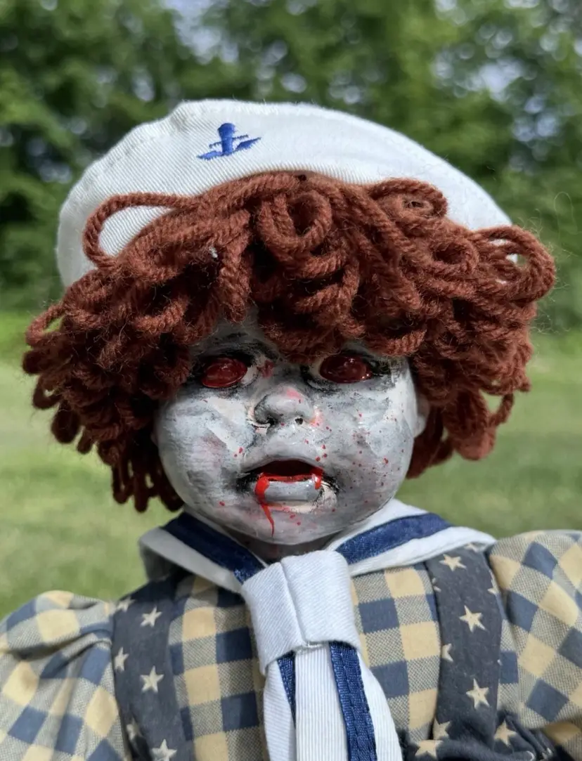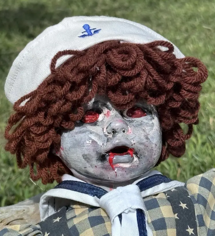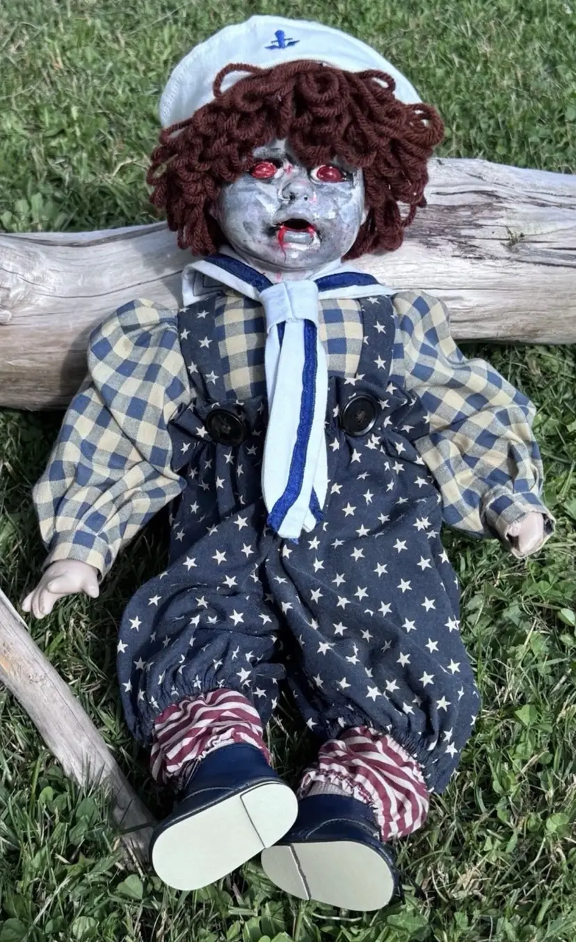 Horror Doll Terrible Ted The Sailor Creepy Scary Halloween Doll OOAK (one of a kind) 16” Decor, Hand Painted Stage Prop or Halloween Decoration
