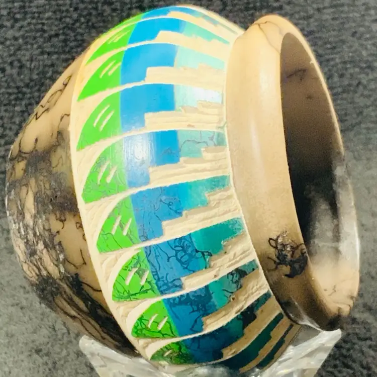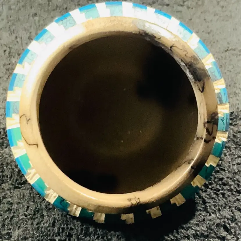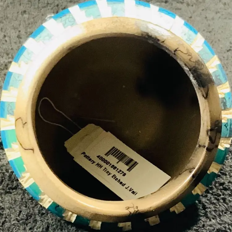 Stunning horse hair mini pottery vessel. 2.75” tall by 3.5” wide. In excellent condition. Still has original tag.