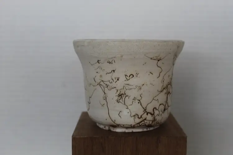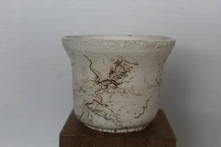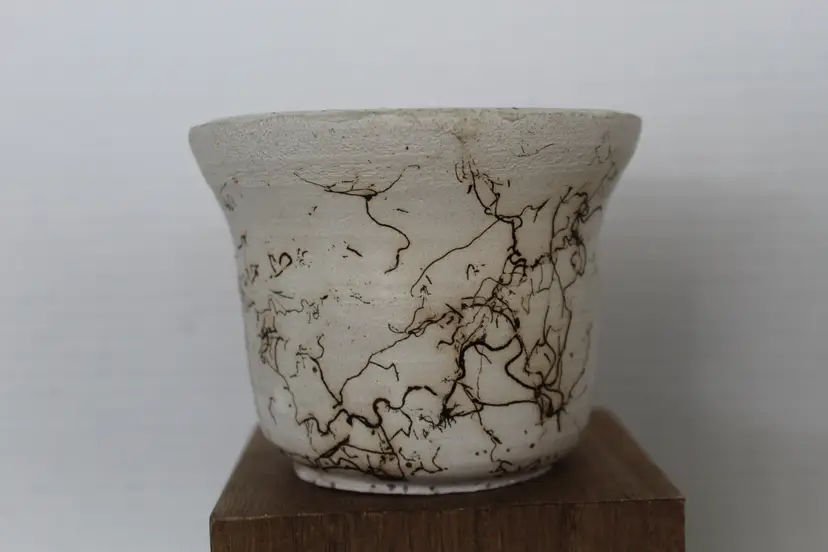 This handcrafted horse hair raku pottery studio art vessel is a unique piece of folk and indigenous art, signed by the artist. Made in the United States from clay, this abstract-patterned vase features a multicolor Raku glaze finish. The production technique used when making horse hair pottery makes each piece truly one-of-a-kind. With its rustic charm and artistic flair, this handcrafted vessel would make a striking addition to any home decor, adding a touch of vintage style to any space.