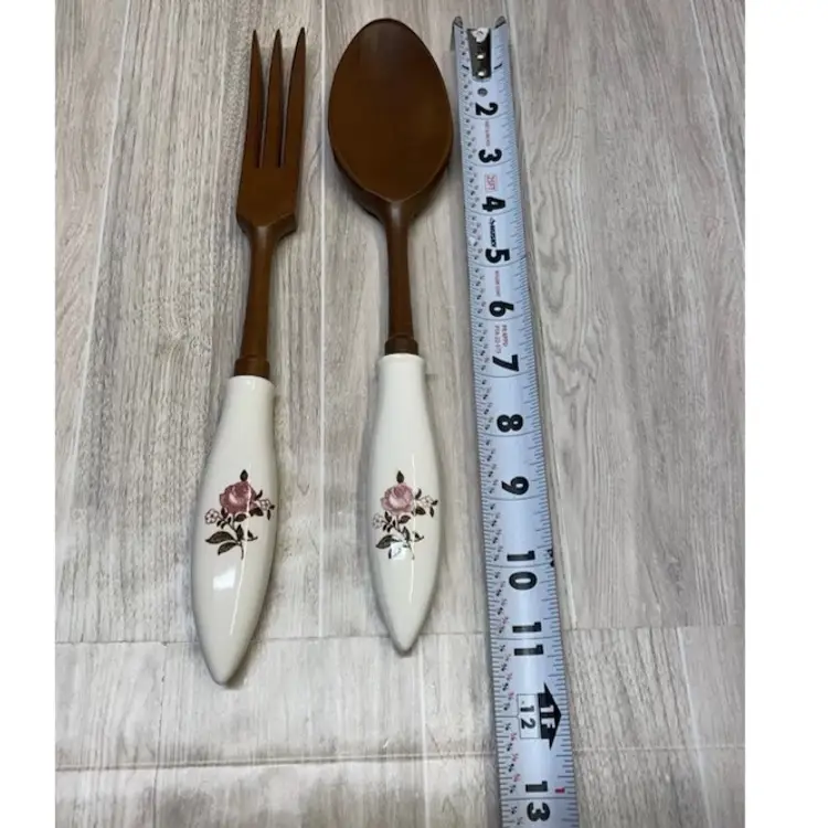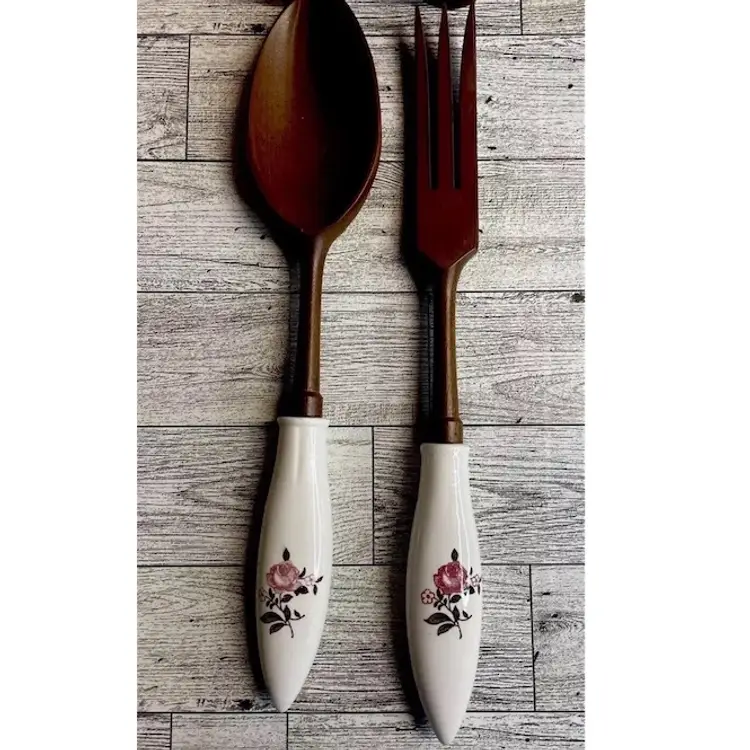 Vintage Midcentury Teak/Ceramic Fork/Spoon Salt/Pepper Grand Canyon Souvenir Set