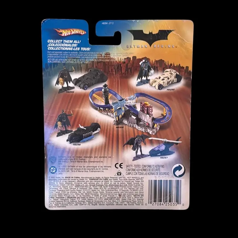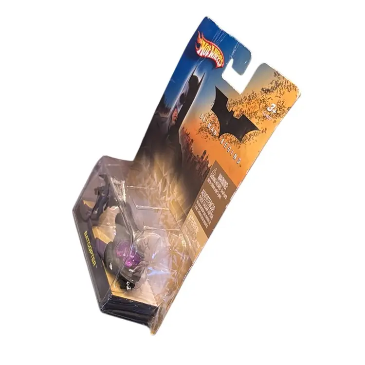 The Hot Wheels DC Comics Batman Begins Batcopter Helicopter is a black diecast toy vehicle with a 1:64 scale figure of Batman. Released in 2006 as part of the Hot Wheels Batman series, this limited edition collectible is perfect for fans of the Batman franchise. The Batcopter helicopter features intricate details and is designed to resemble the iconic vehicle from the Batman Begins movie, making it a must-have for collectors and enthusiasts alike. Suitable for children ages 3 and up, this toy is sure to delight both boys and girls who love the Dark Knight superhero. New unopened package some storage wear to cardboard backing.