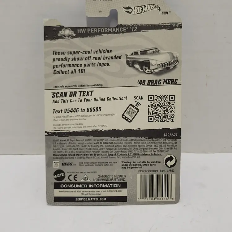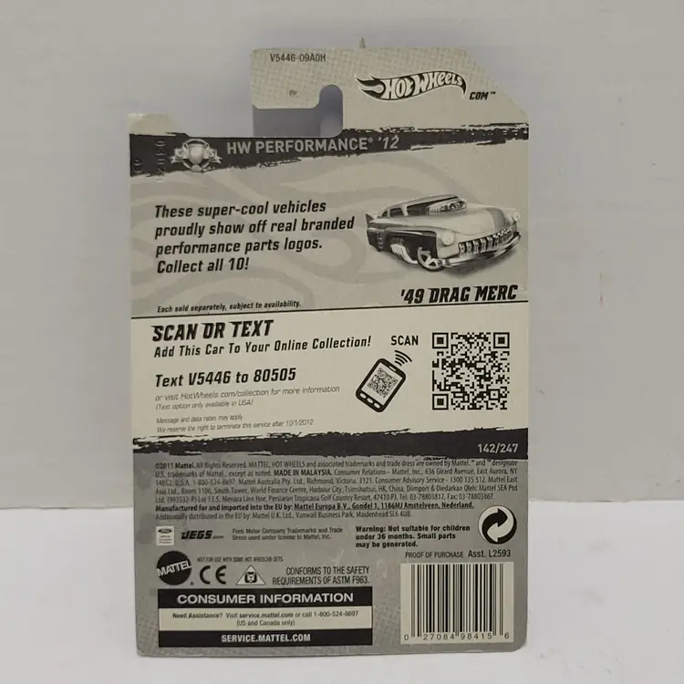 Hot Wheels HW PERFORMANCE '12 Yellow JEGS '49 DRAG MERC #V5446