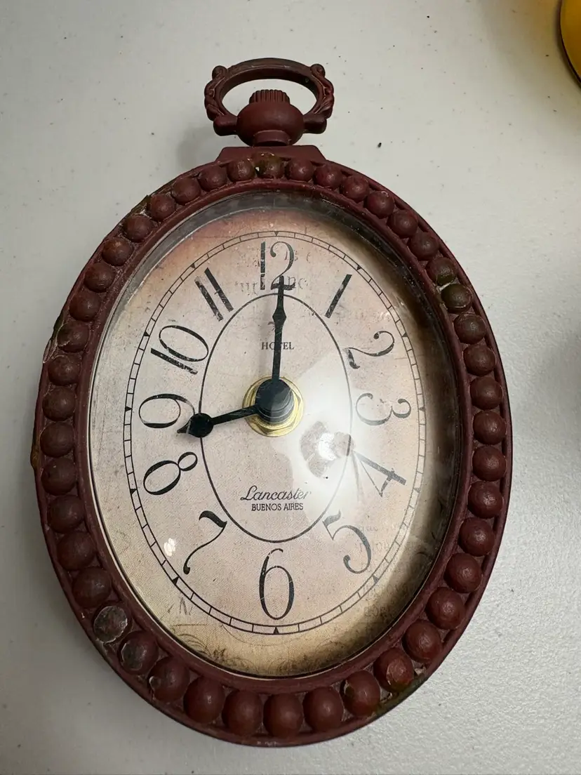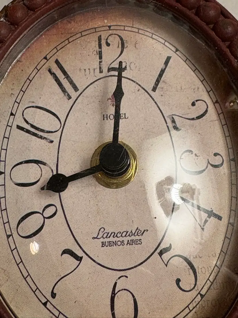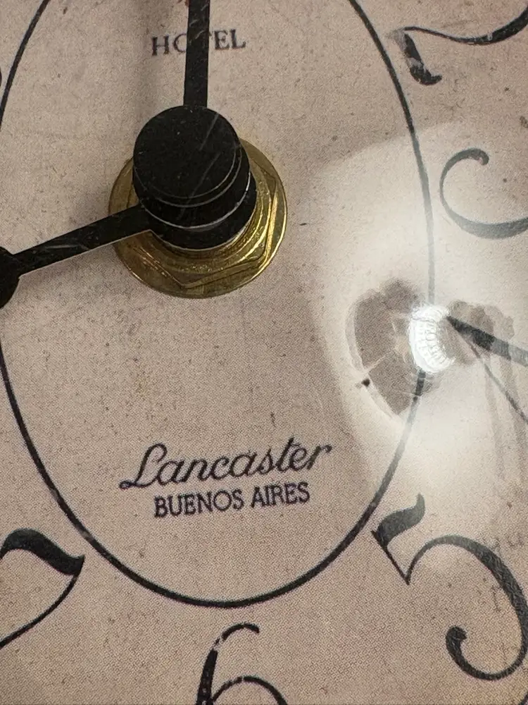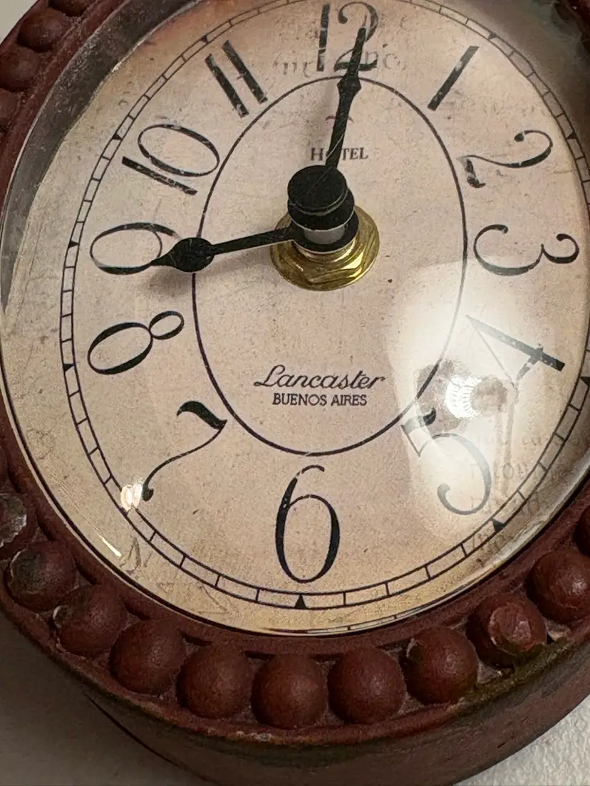 The Hotel Lancaster Buenos Aires Argentine Wall Clock is a rare vintage piece with a unique oval shape and bubble glass display. Made of metal and powered by an AA battery, this analog clock features a brown color and is designed in the style of a wall clock. With its vintage appeal and advertising clock model, this collectible item would make a charming addition to any room in your home. The decorative back is made of plastic.