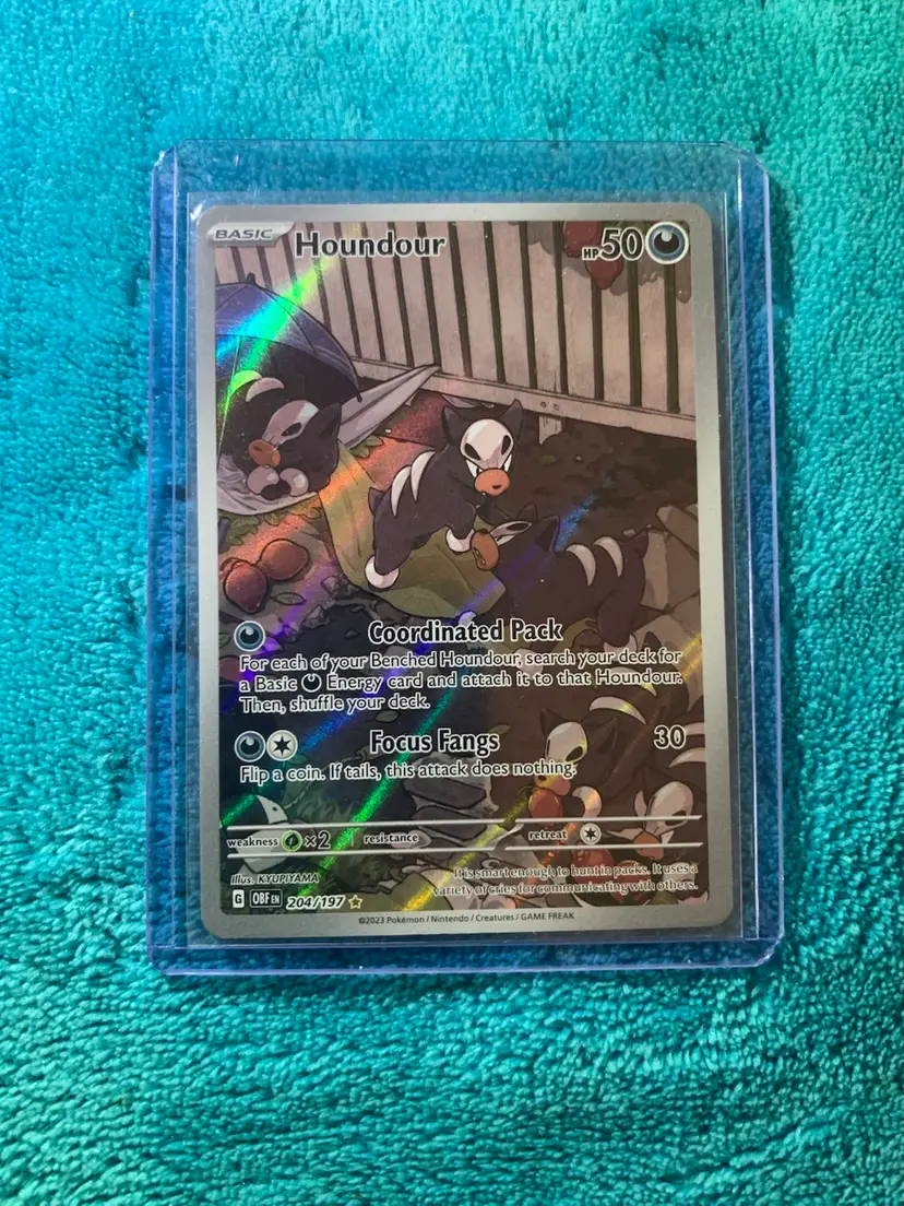 Obsidian Flames. The sticker on the back is on the outside of the hard top loader sleeve, not on the card itself