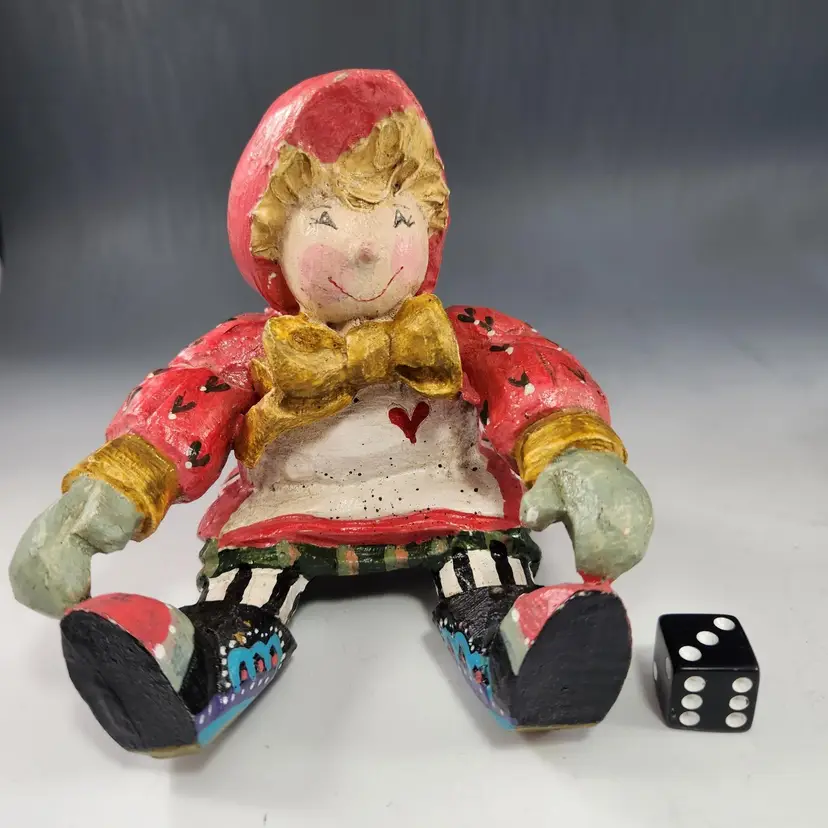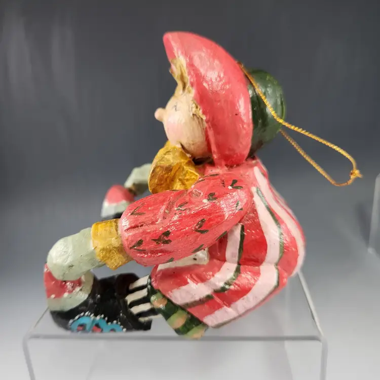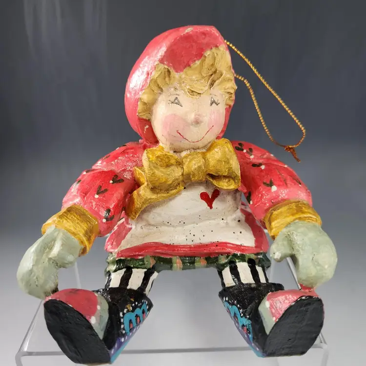 Whimsical 1992 House of Hatten/Denise Calla Christmas ornament. Shelf sitter style baby doll from her Reach for the Stars series. Versatile, can be hung as an ornament or used as a shelf sitter year round. Resin copy of a carved wood design for lightness, hand painted features on these ornaments. Marked & dated. I have other ornaments from the same line listed (see last photo) so please search my other listings.