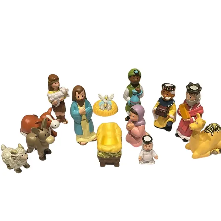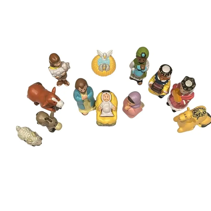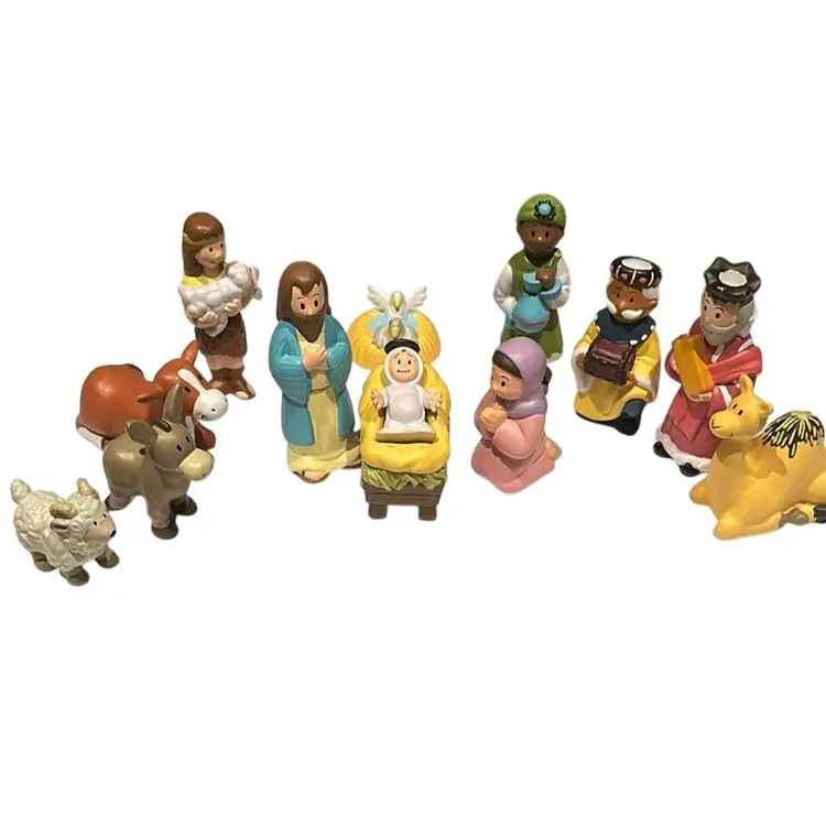 Tallest piece is 3.5 in baby Jesus is 1.75in