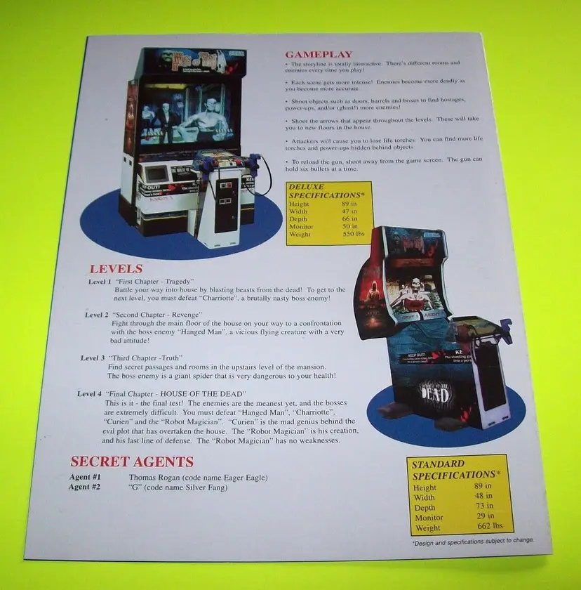 Arcade: Flyer Modified Item: No Country/Region of Manufacture: United States Original/Reproduction: Original Year: 1996 Game Title: House Of The Dead Brand: SEGA