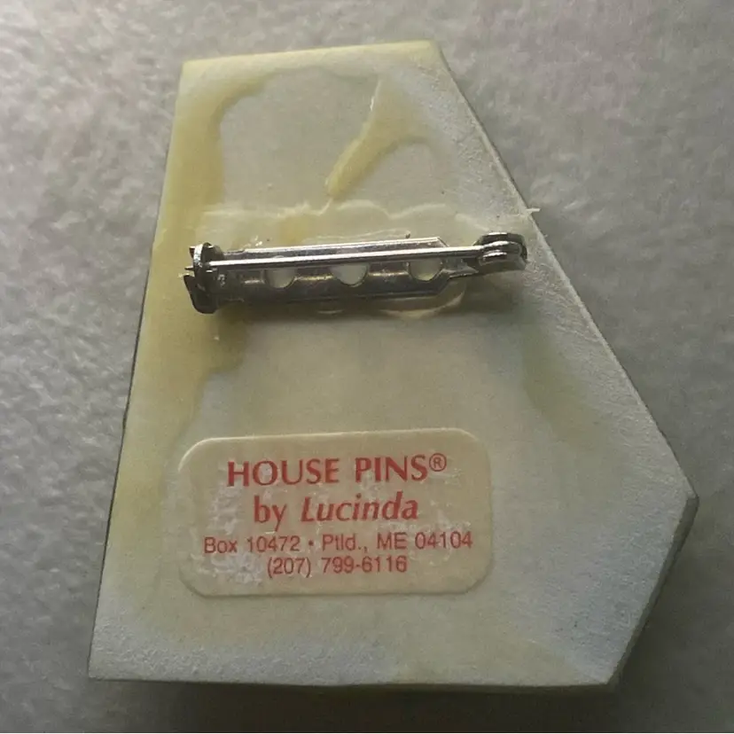 Includes ‘House Pins by Lucinda’ sticker on back.