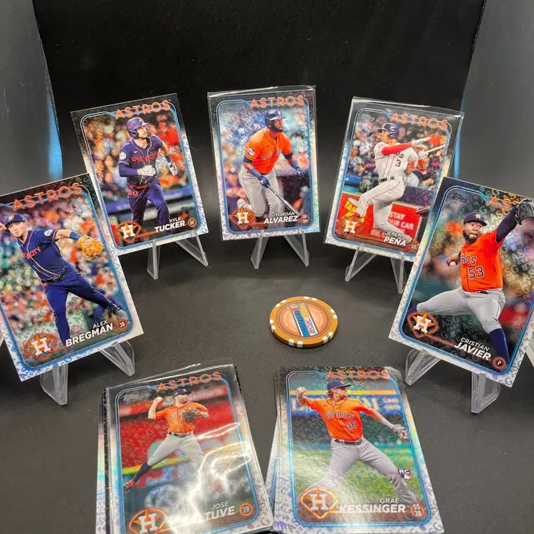 This a complete team set of the Houston Astros from the AllStar parallel 2024 Topps set. Each card is foil stamped with the ASG logo.