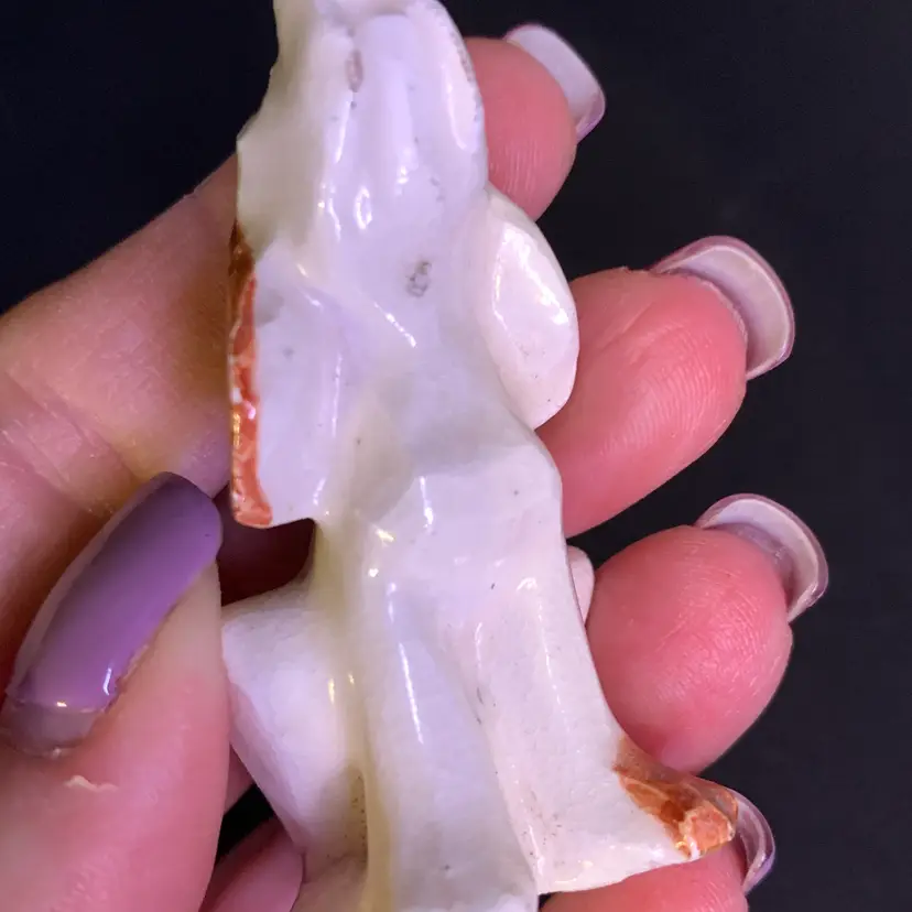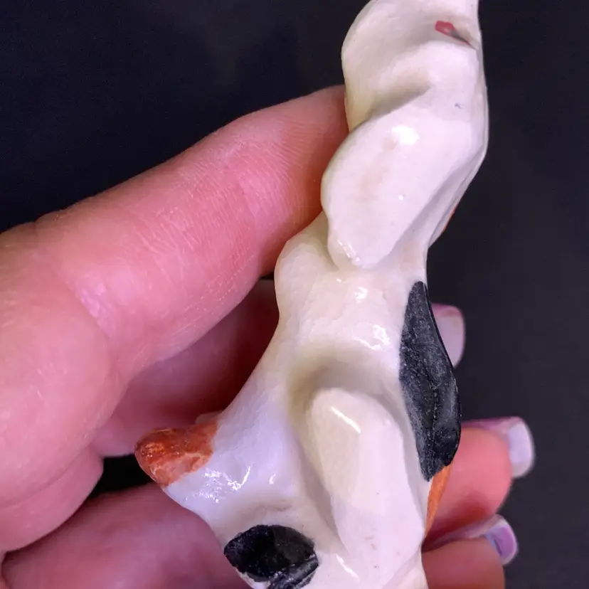 For the dog lover in us all! No chips or cracks. Measures 1 3/4 inches across, 1 1/8 inches wide and 2 1/4 inches tall. Weighs 1 ounce. If the actual postage ends up being less than what you paid, you will be refunded for anything over one dollar.