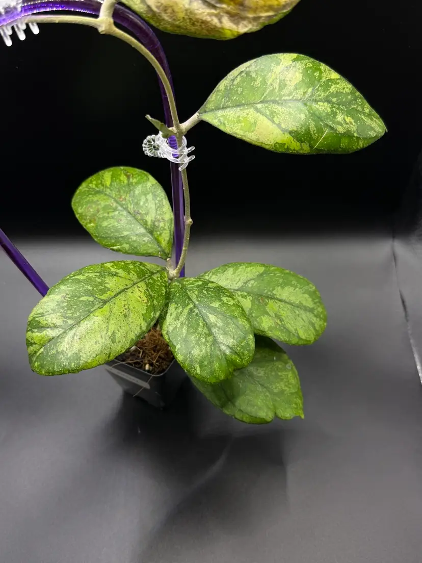 Super splashy! Great genes from Cactus and Exotics. Large plant ready to cut and prop or let her keep bushing out. Please note one leaf got too close to the grow light.