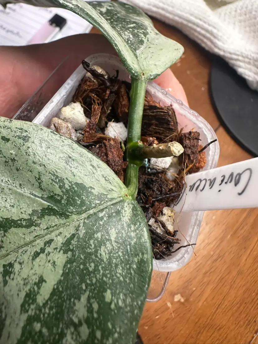 This comes from a plant that puts out high splash or silver every time. She’s a beaut Clark! One popped growth point, one bulging growth point (heh).