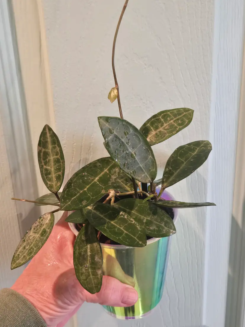 This listing is for a well rooted and actively growing Hoya Elliptica (splash). Exact plant in photos. I treat my hoyas weekly with PureCrop1 as a preventative. Decorate pot and/or trellis not included